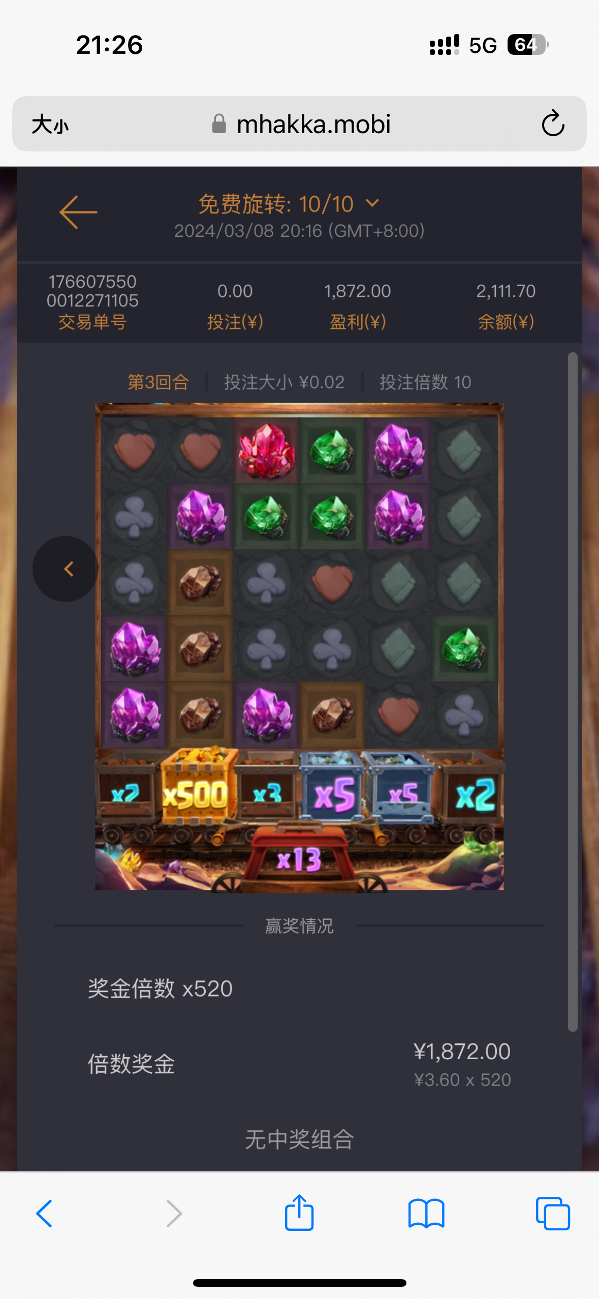 万古神帝: 上午白嫖打到230怕不给出直接去玩的夜醉佳人两块钱一拉输到170的时候出了个免费果断退出来  去提款  170五分钟到账  充回去50  两块一拉玩夺宝  输到20的时候就去吧夜醉的免费给开了  爆了160  返回直接提了180纯白嫖