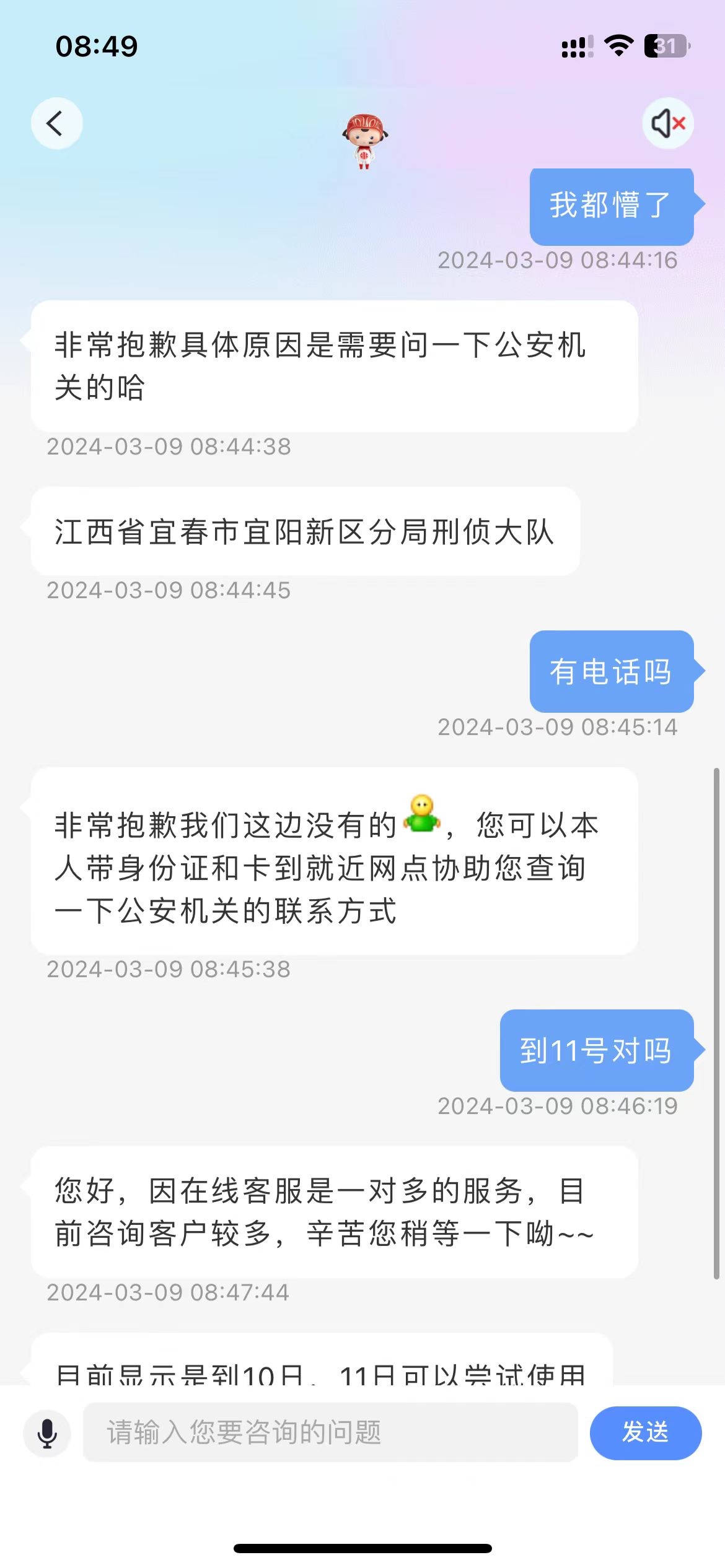 昨天提现钱还没用 卡被刑侦冻结