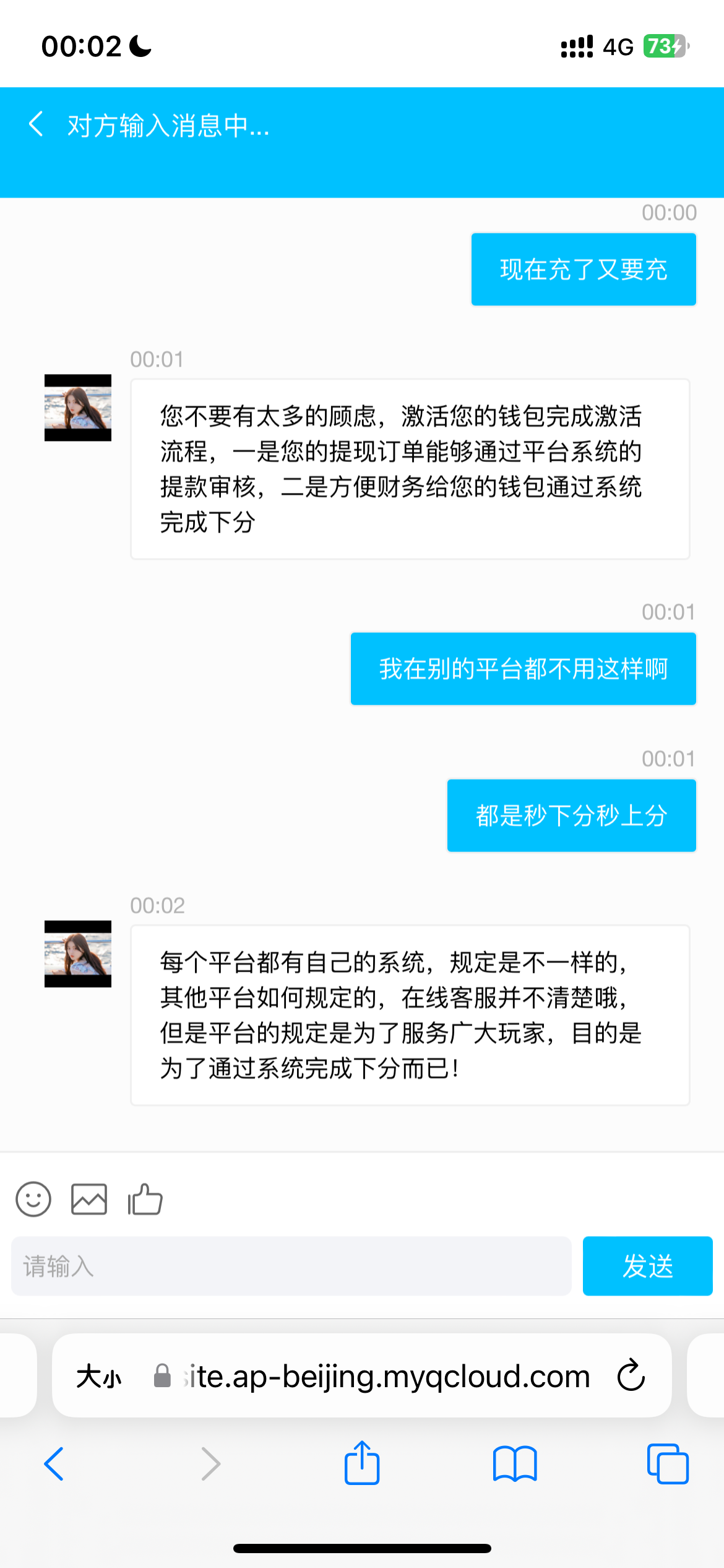 呆呆再见 你自己充值试试看吧,成功告诉我。反正我的梭哈输完了,前面充一百我打到400提现,结果告诉我活跃度不够,叫我再次充值二百,万一我又赢到800又叫我再充值怎么办,你还好签到给你出,我签到都不给出,充值一百 ...