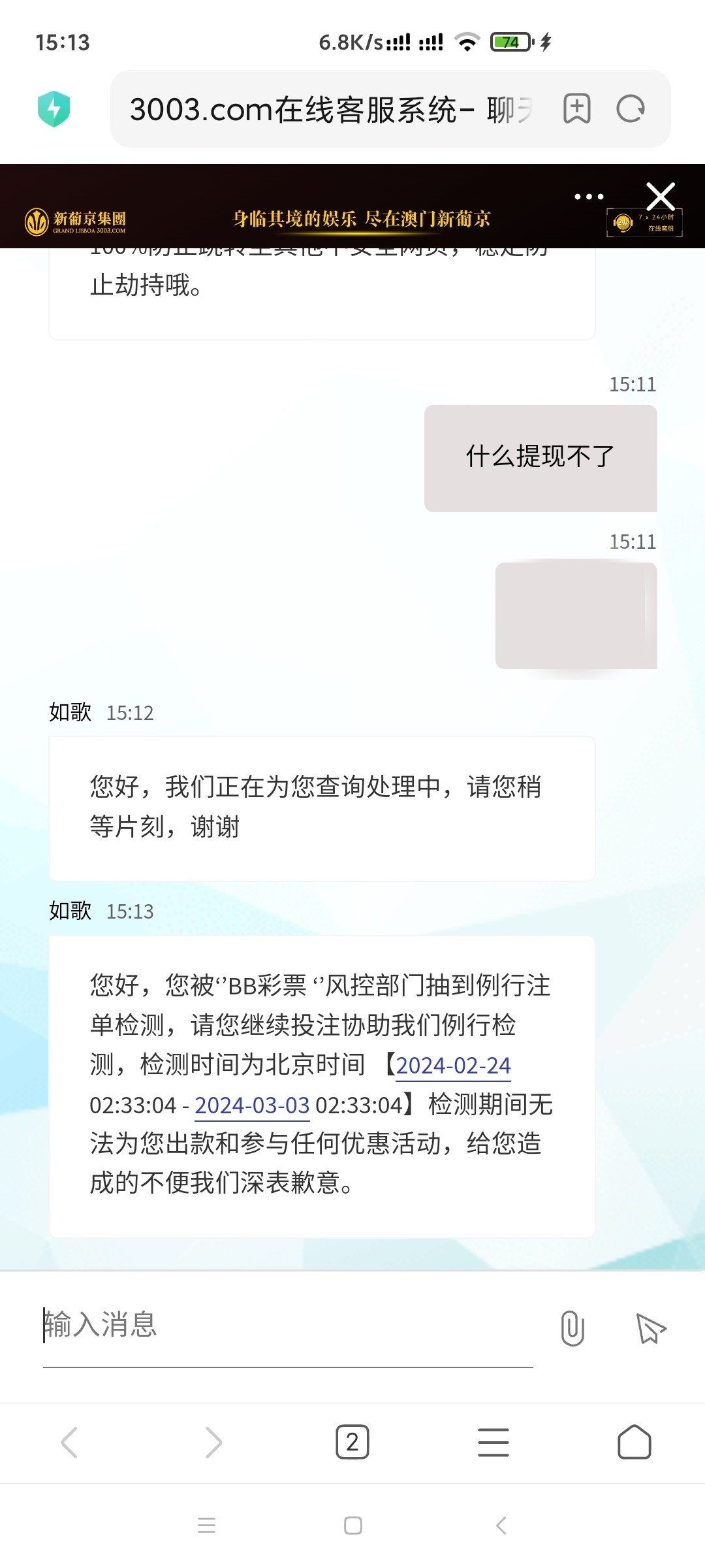 玩不起 充了100什么活动都没申请 提了200就封号了 哈哈哈