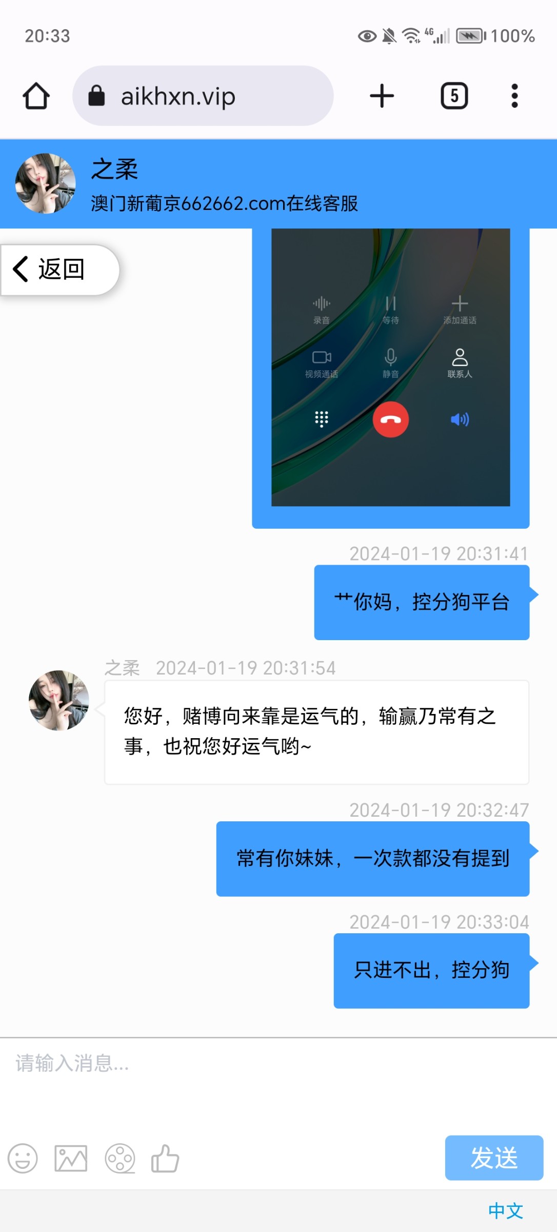 纯纯野鸡中野鸡,没停过杀我。哪怕是让我赢一把,定位我有什么意思。真的,野鸡中的野鸡。死妈东西,忍了他很久了。几个月了,上不去分,稳稳瞄准杀。这是我赌这么多年来,唯一一个让我气的。真的唯一一个。天天想想他还会放水,再充一分钱我不得好死。真的彻底死心,我没遇到这么野鸡。我赌狗这么多年。谁玩谁全家暴毙。