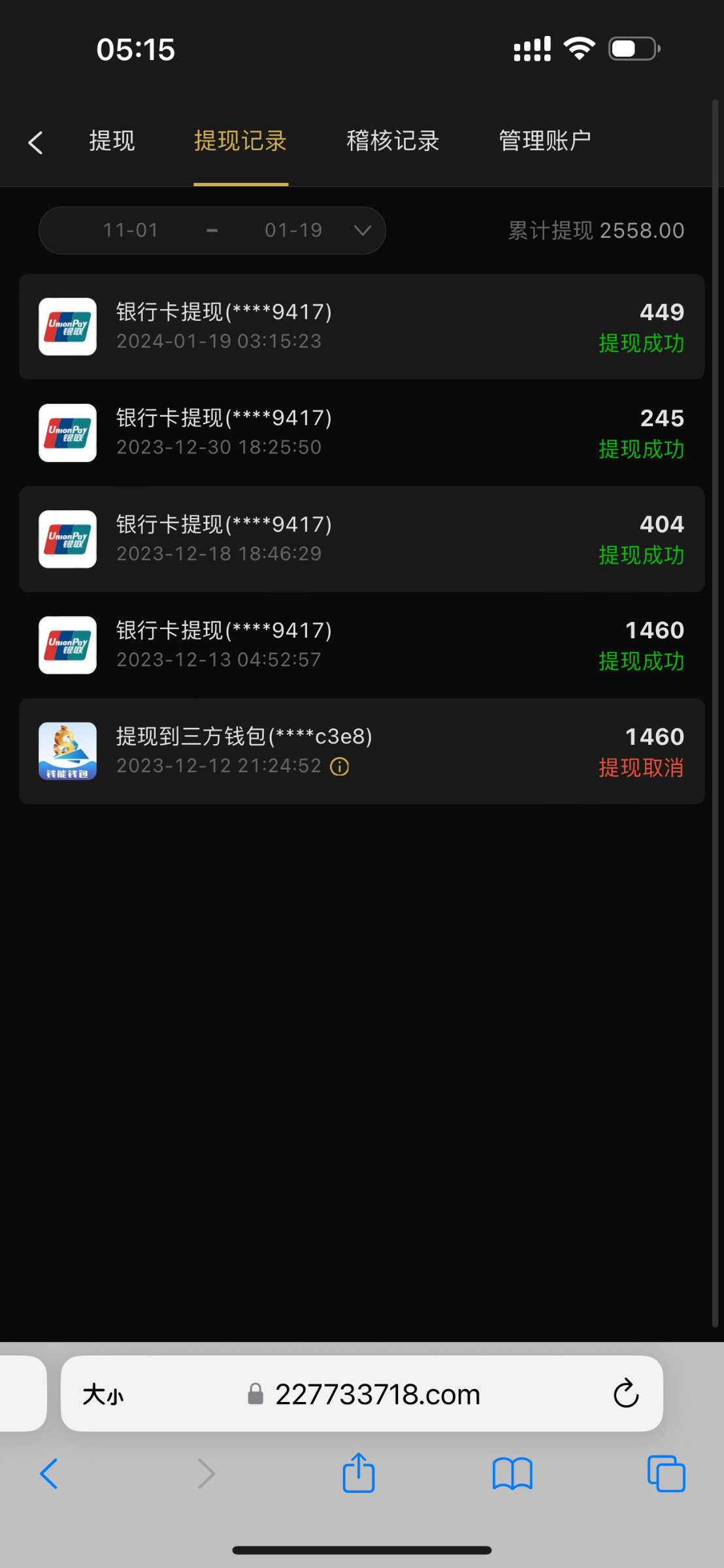 老哥们 我以后在也不碰了,已经到账了 明天就去带老婆把房子和车子还有贷款全部还了 ,过一个好年。