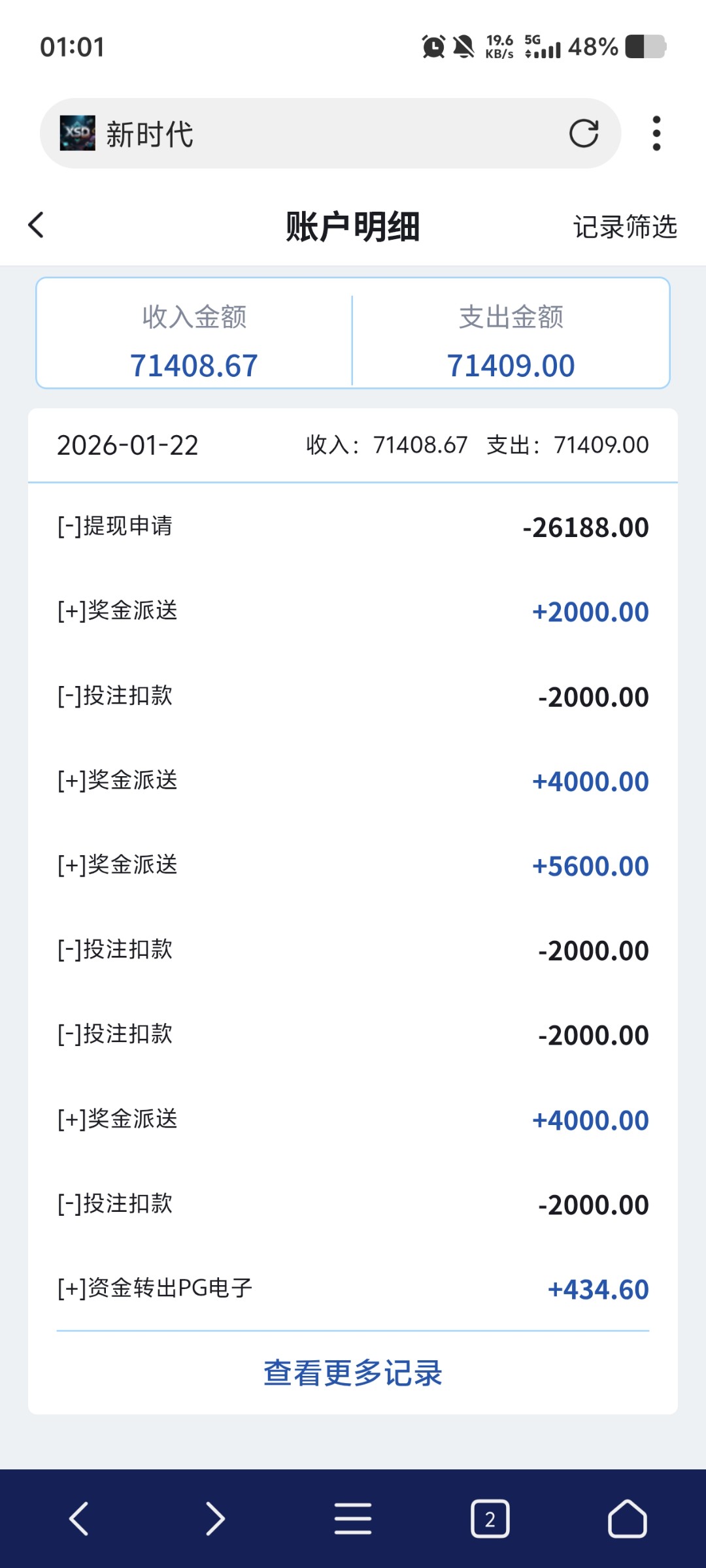 兄弟们这几天打新时代打得好累 刚出第二天就充值 一直干现在第5天 天天充值 第一天赢了差不多1k 然后第二天又输2400 后面第三天领返水又回到1300 又冲又挂壁 第四天20号领3个台34月彩只出了一个200 然后冲新时代给我回到900 又冲又挂 第5天今天领80返水上200 然后有下分吃饭 剩下上分现在又干到1100 我还有必要玩吗