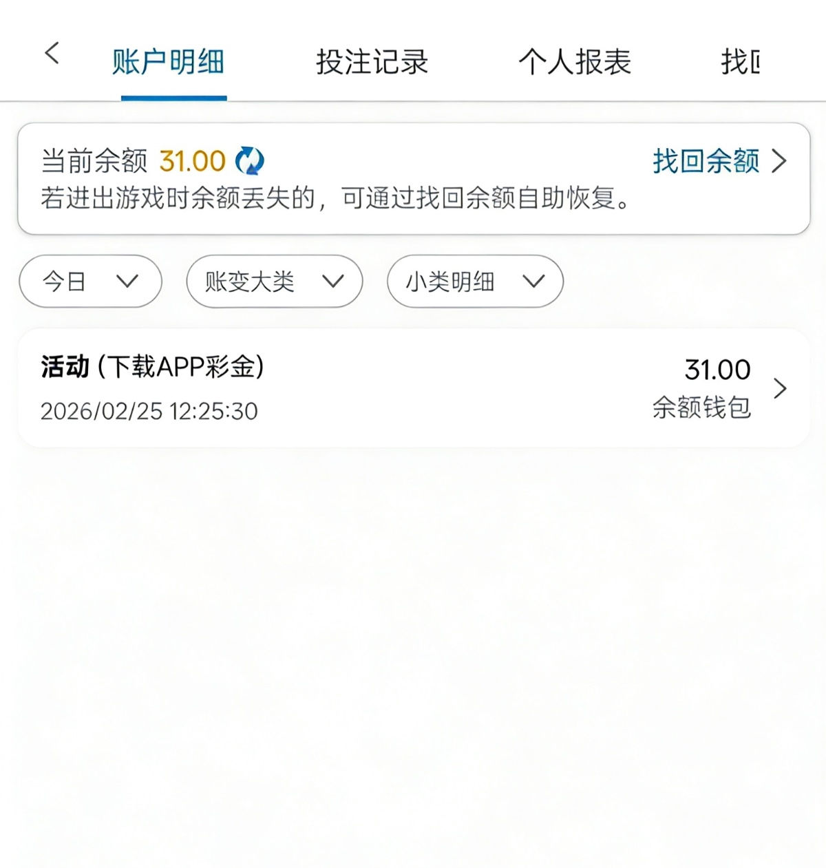 妈的垃圾台,中午接电话说登录领彩金,上去没有,找客服变成回归存送了。我去年还输一万多呢。