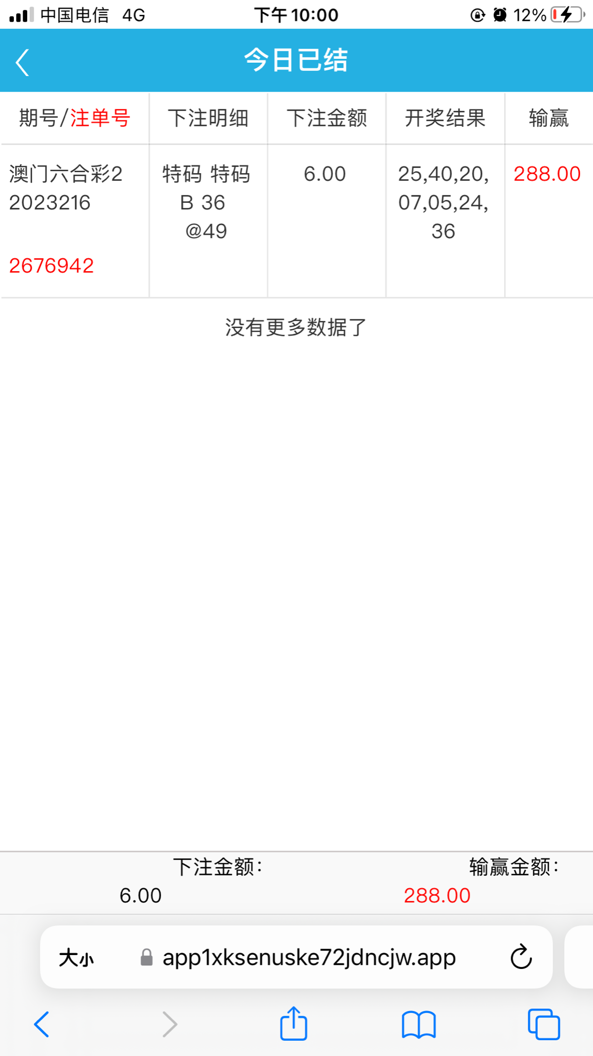 昨天充了50提350打的反水几块钱,6块买的六合彩尽然中了