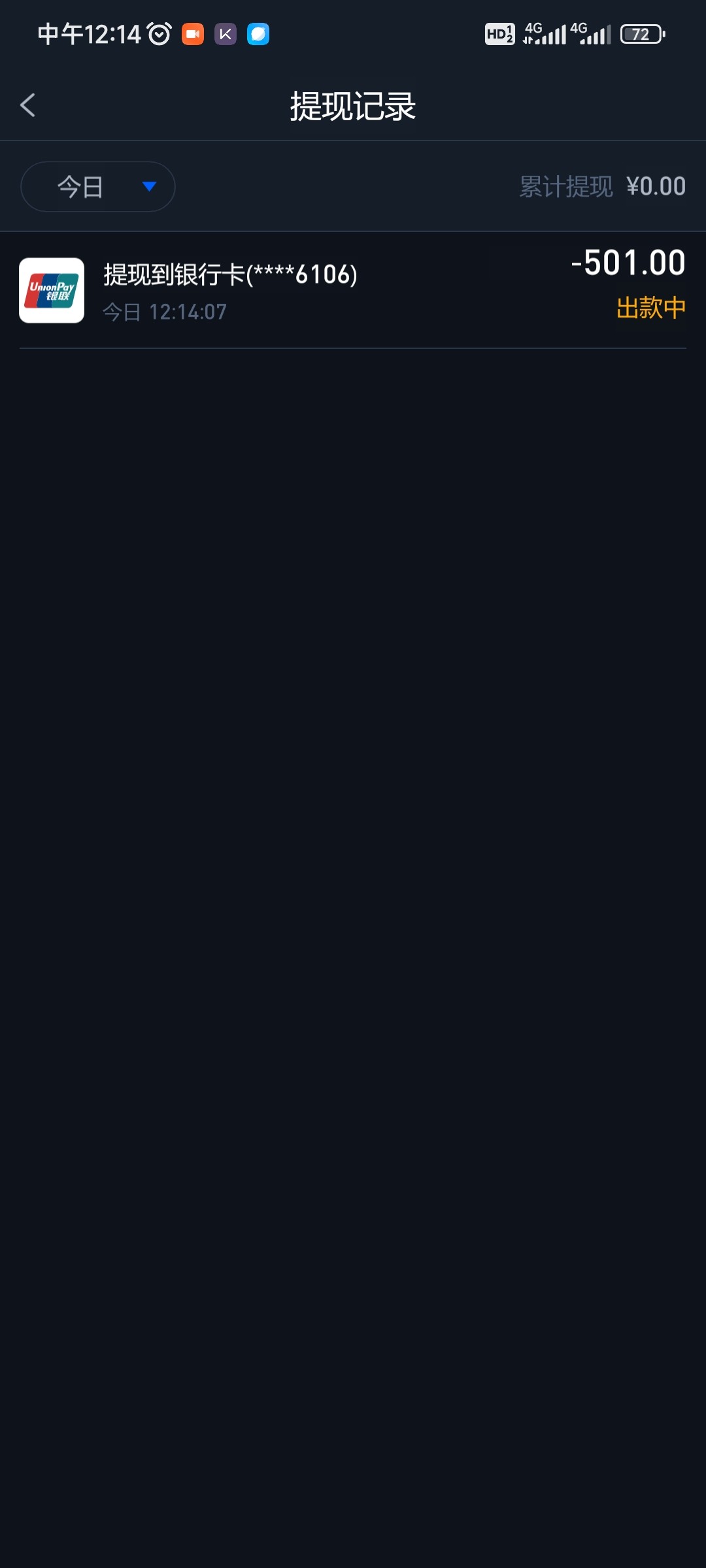 出了200到账了