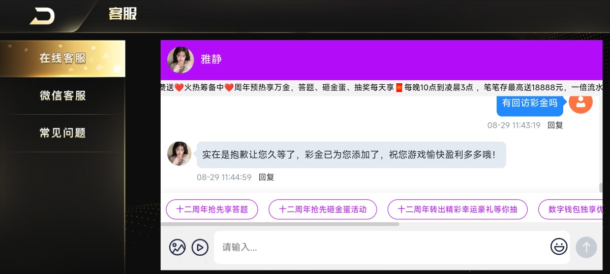 上次领过88女神彩金这次又有了,注册彩金找客服领取,回访彩金也是