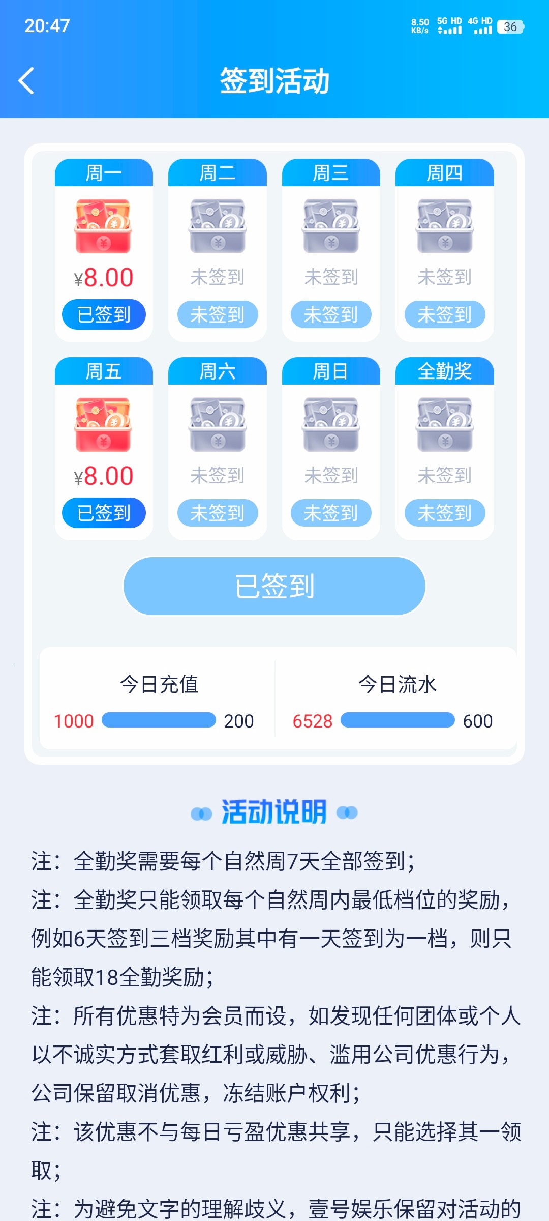 首存5天签到连续送:
