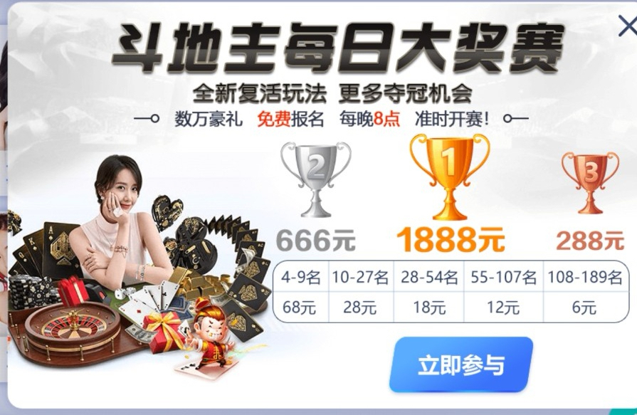 每天晚上八点斗地主大奖赛,和之前的235金花一模一样,第一名888