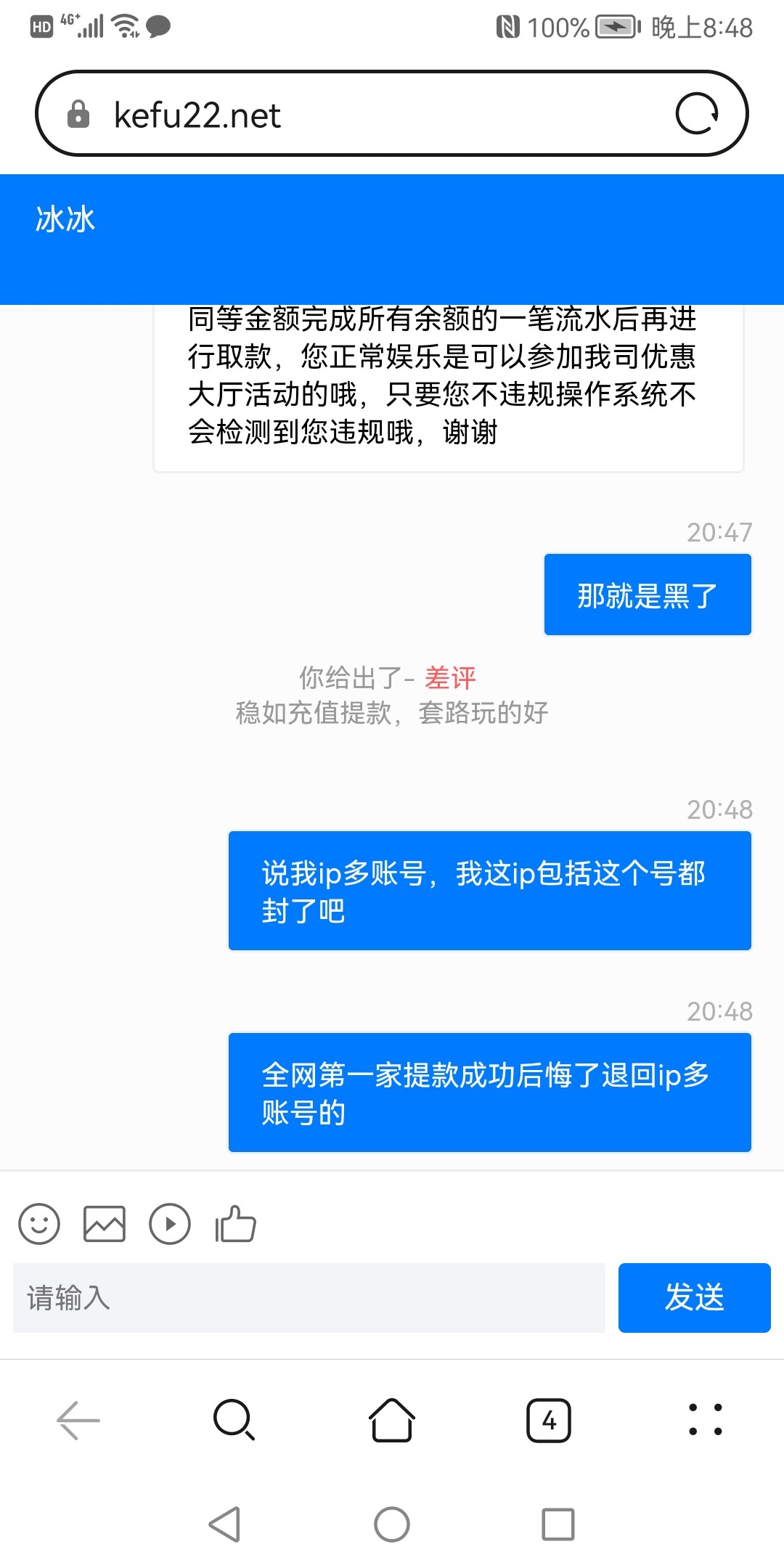 提款成功,一直没到,问客服说再排队,返回后,过一会再看退回.ip多账号,非说你ip问题,假装清除你其他账号,也不直接封你号,然后装模作样的说清空了让你充值提款。第一次遇到这种b台,成功后,后悔了给你取消退回的