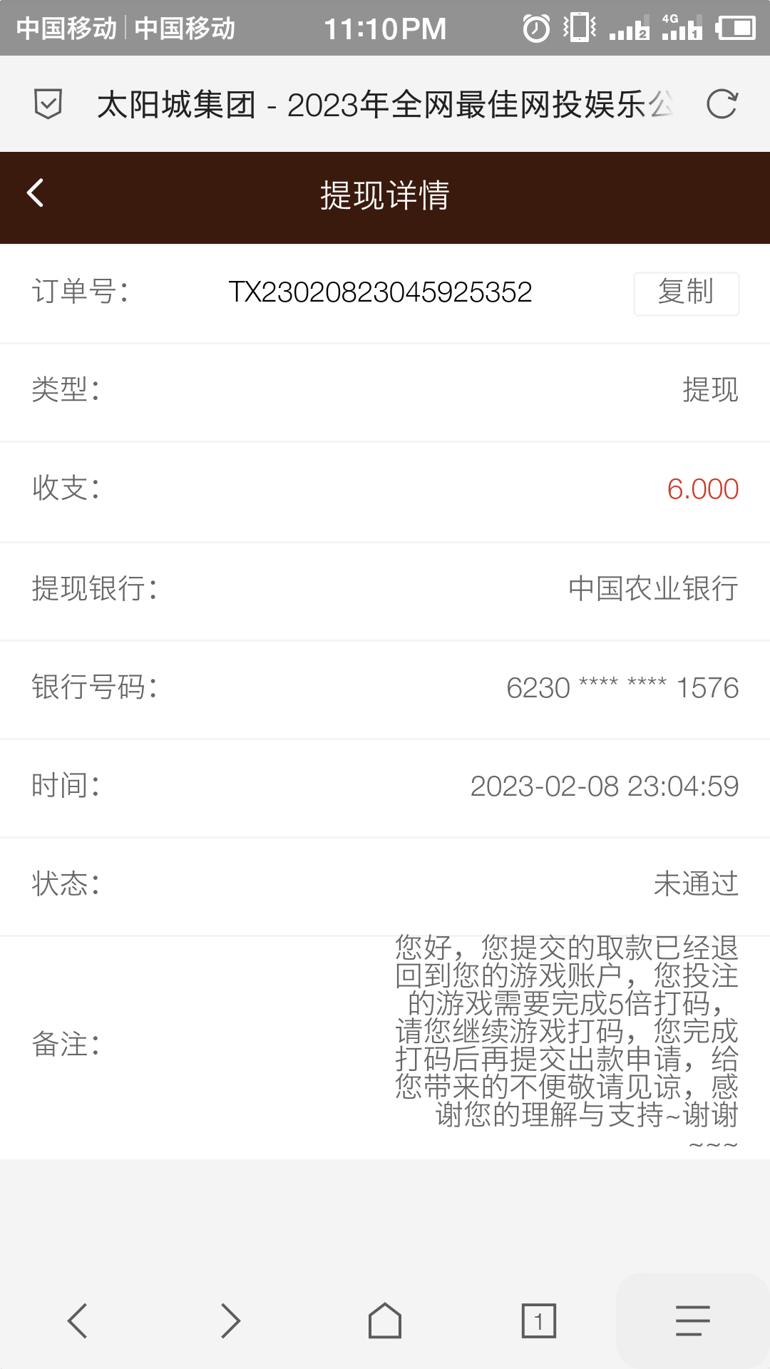 没格局 你为什么不提1块呢?你看下狗庄会给你出吗!6块钱都提 牛逼 2018这台子最高一次出款20万都给到账