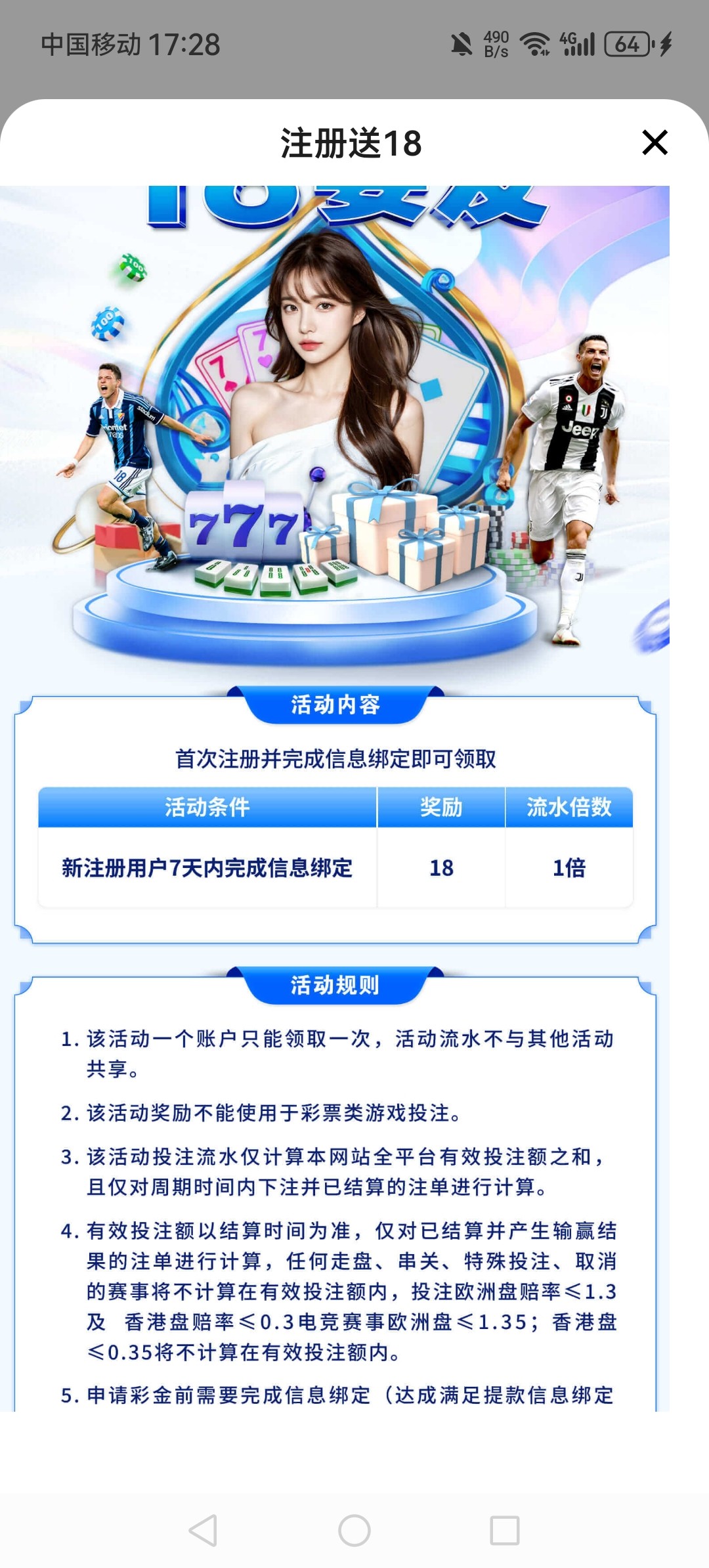 新人注册绑卡完善信息 找客服申请18元彩金 彩金一倍水 游戏除了彩票类其他的都可以玩 提现100起 说是下午2点后正式运营 。