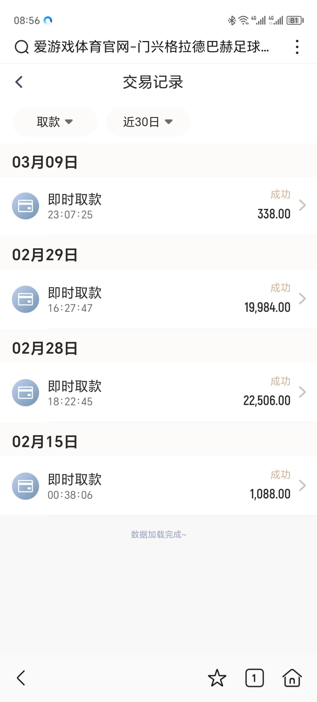 我乐鱼提了288,爱游戏提了100。