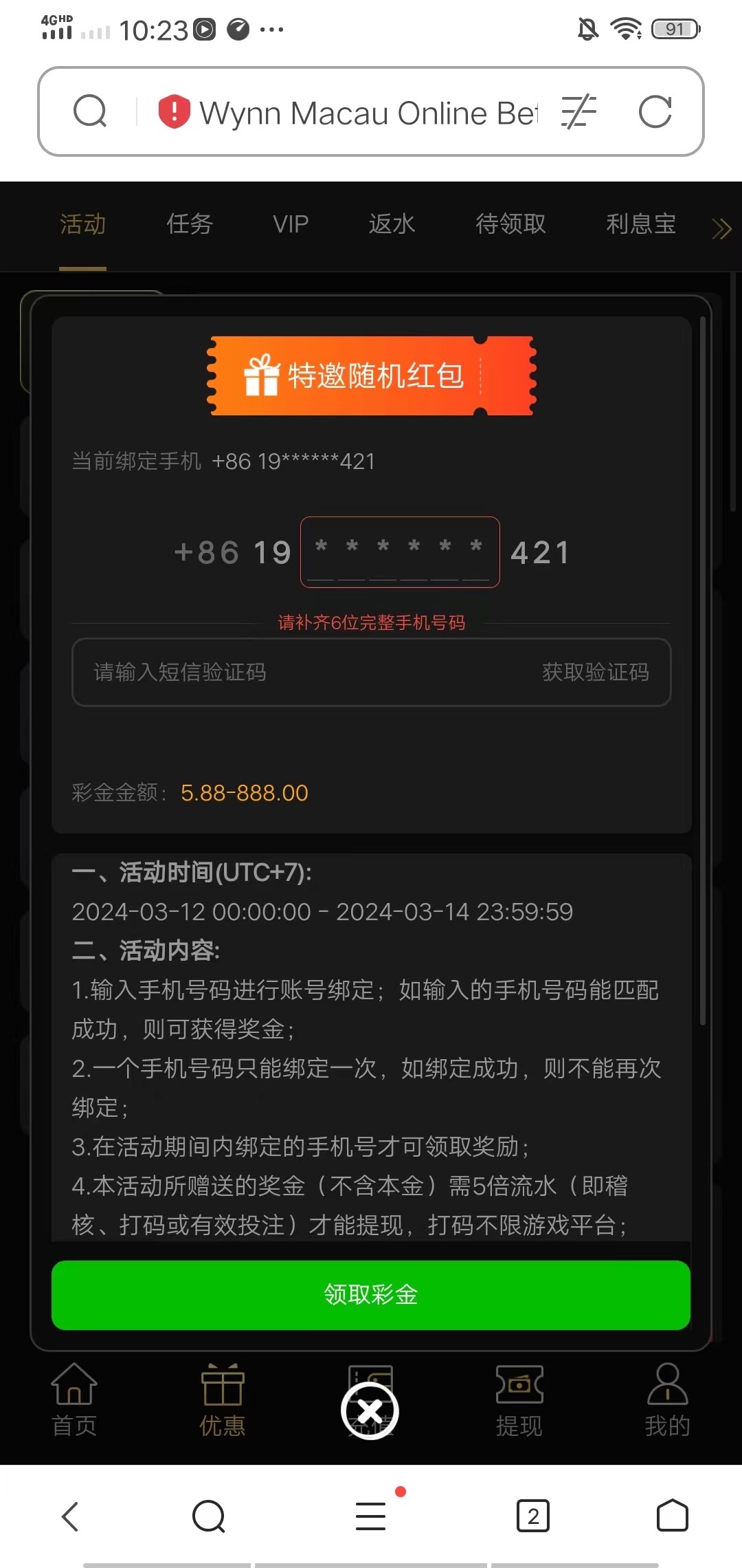 输入手机碰瓷领取