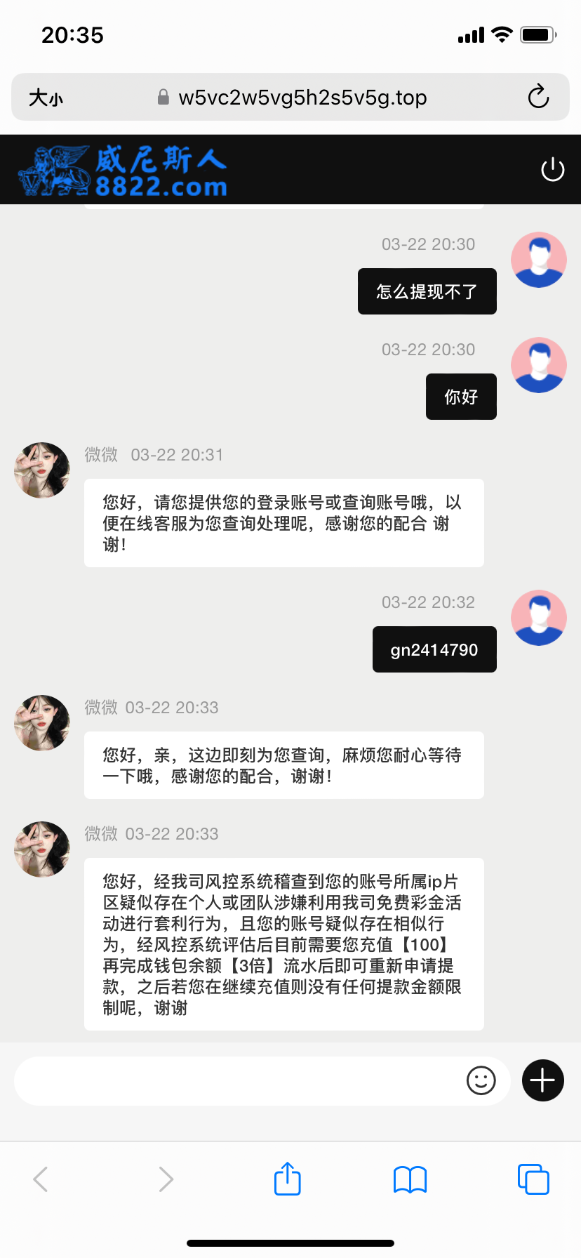 昨天冲了100提了188,刚才充了188打到300直接黑了,说风控审核注单,傻逼太子
