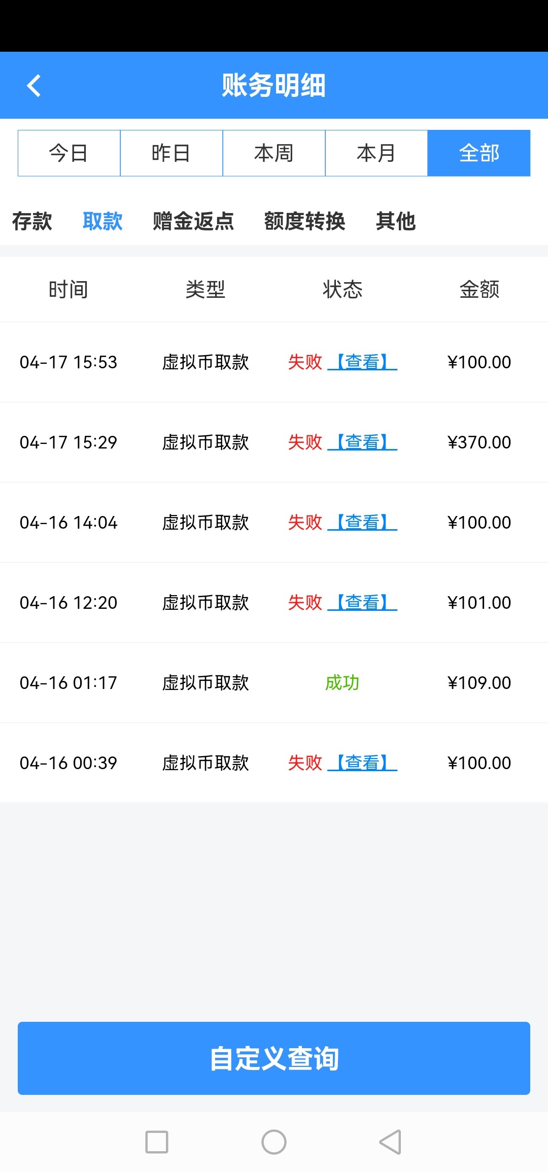 小蓝签到系列好几个喜欢随机黑,估计原因如下,1,当天营收情况,2,审核员心情,3,出款通道钱包里面有没有钱。个人经验建议按照客服要求优先使用k宝或者vip