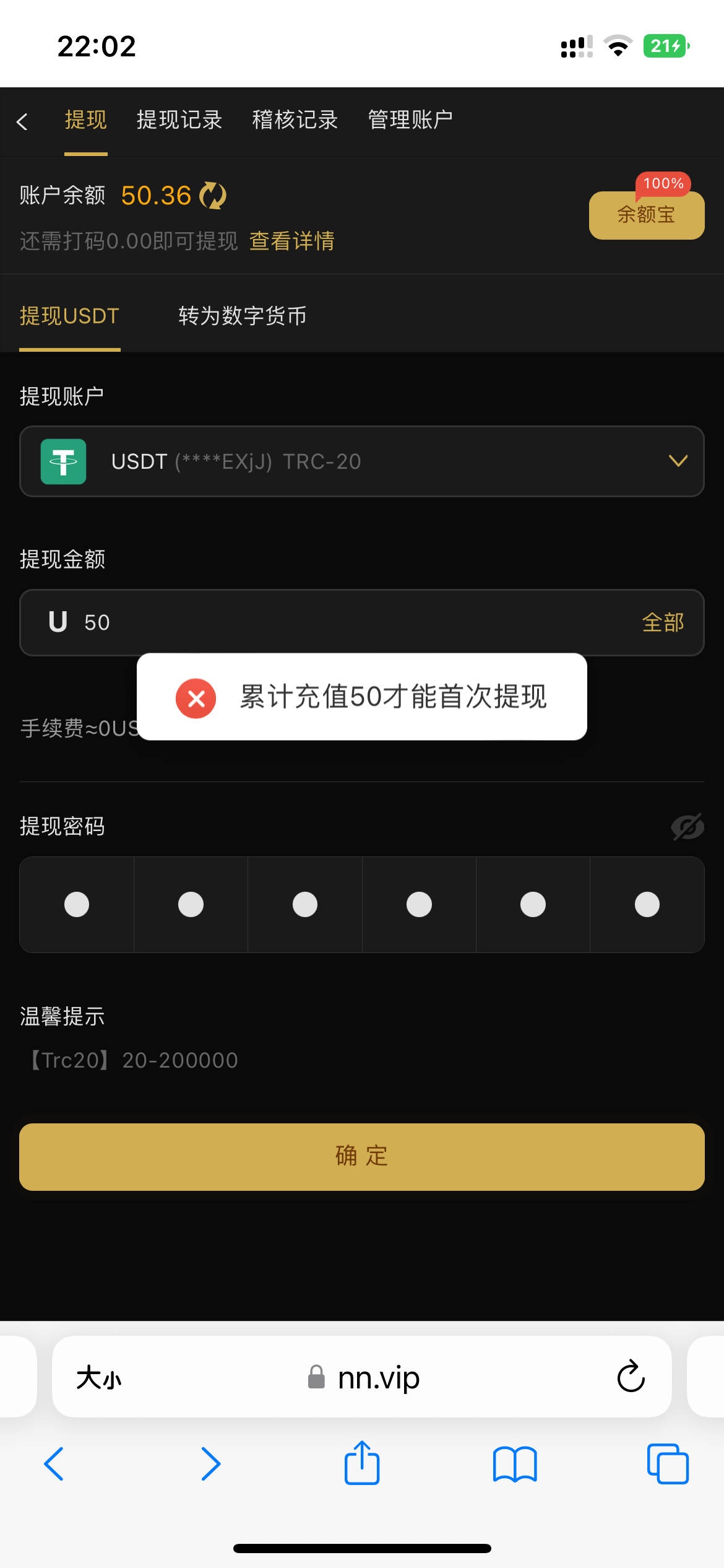 草尼玛的,要充50u才能提现