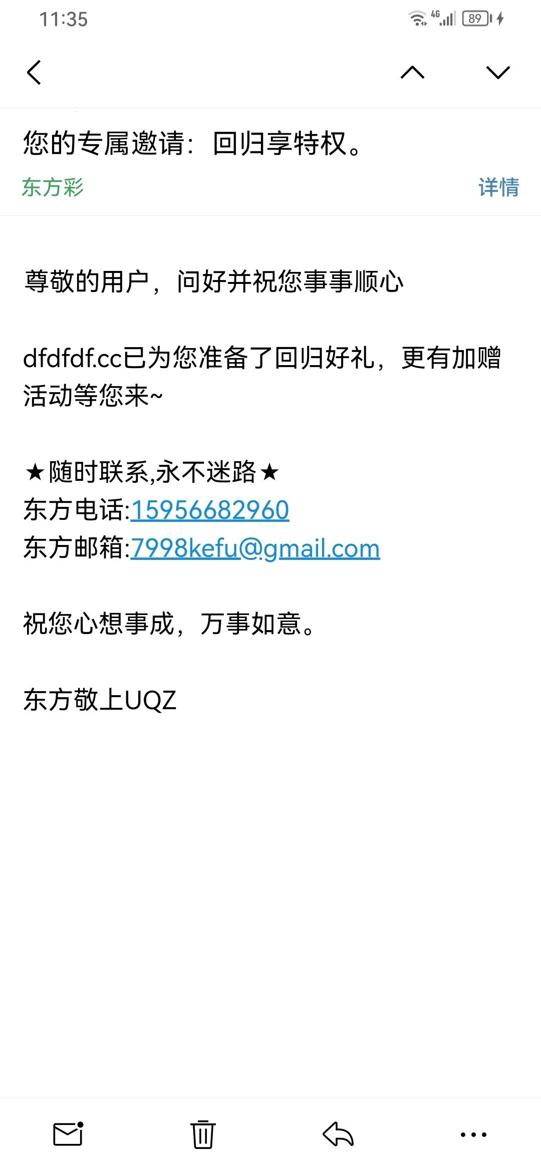 老用户收到邮箱回馈