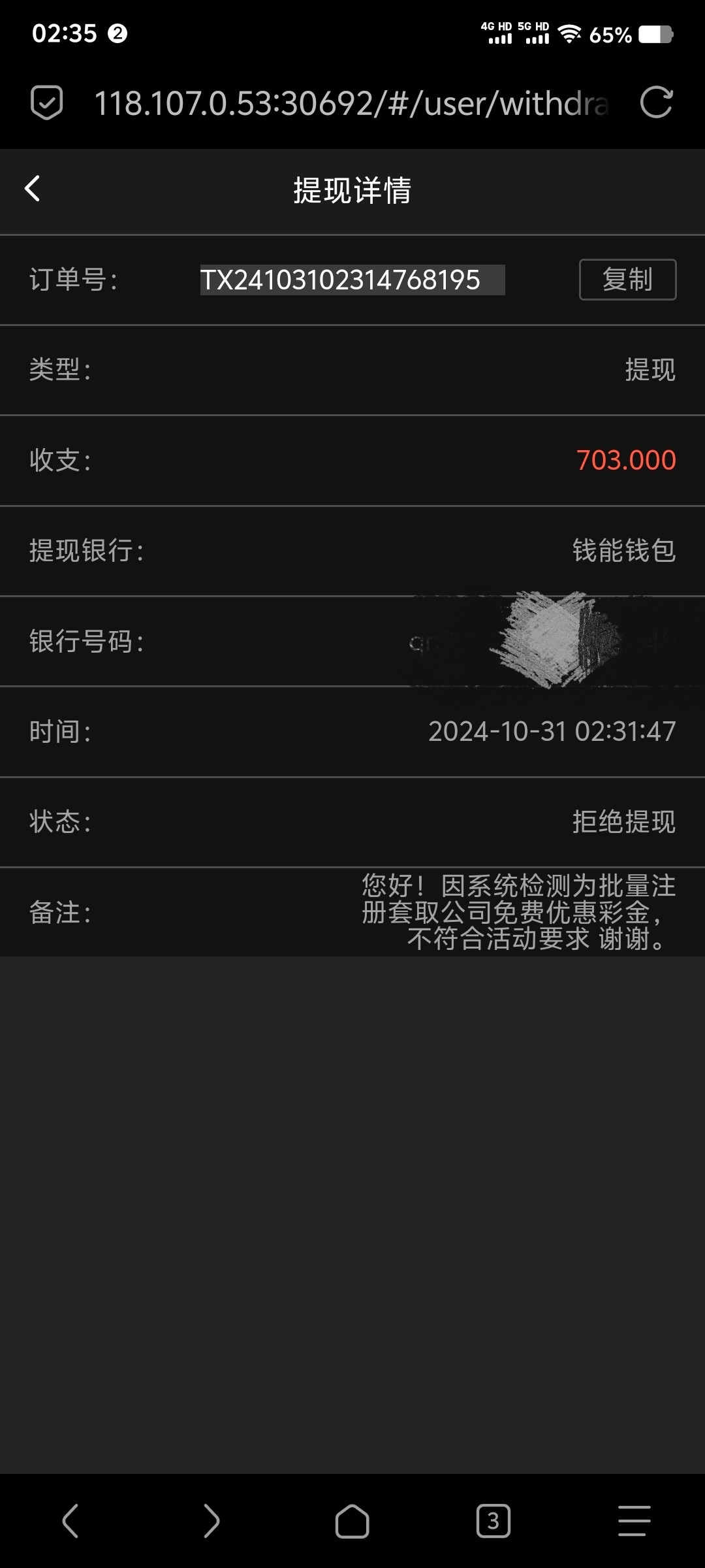 提现直接被拒