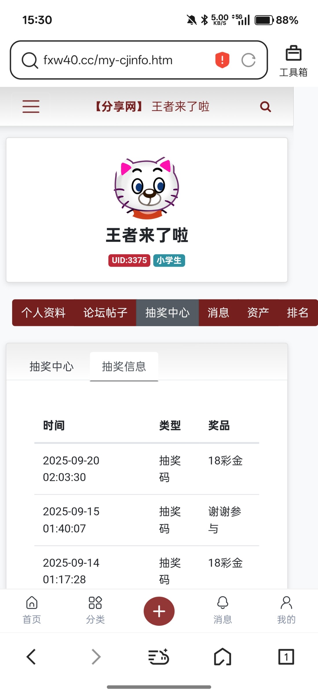 抽奖中了18彩金送到非凡账号 pm02468