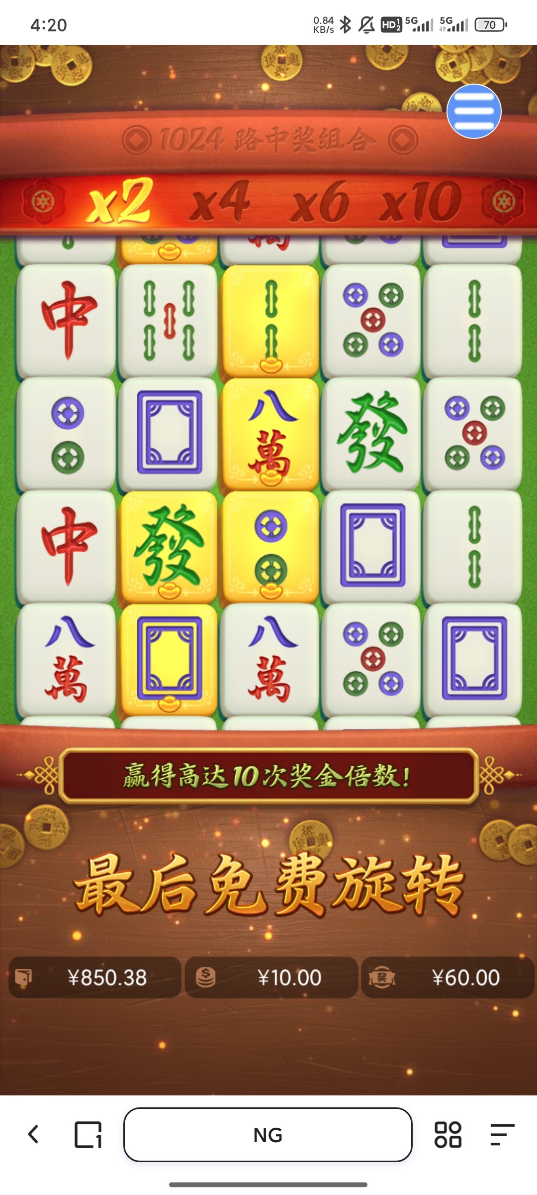 早知道就不去玩ng了,下午赢的2k,晚上就送给ng了,2000块钱,进了2次胡,一共炸70,乐死我了