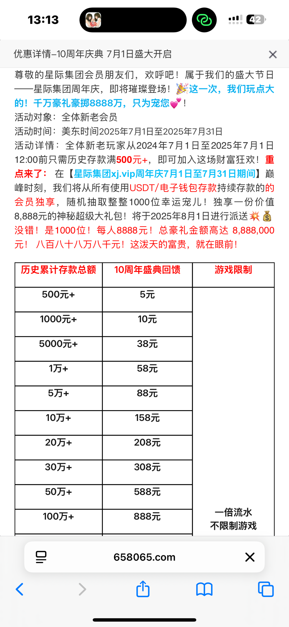 有号的去看看送了没有 这台充值过的每个月都有彩金送的 网址 658065.com