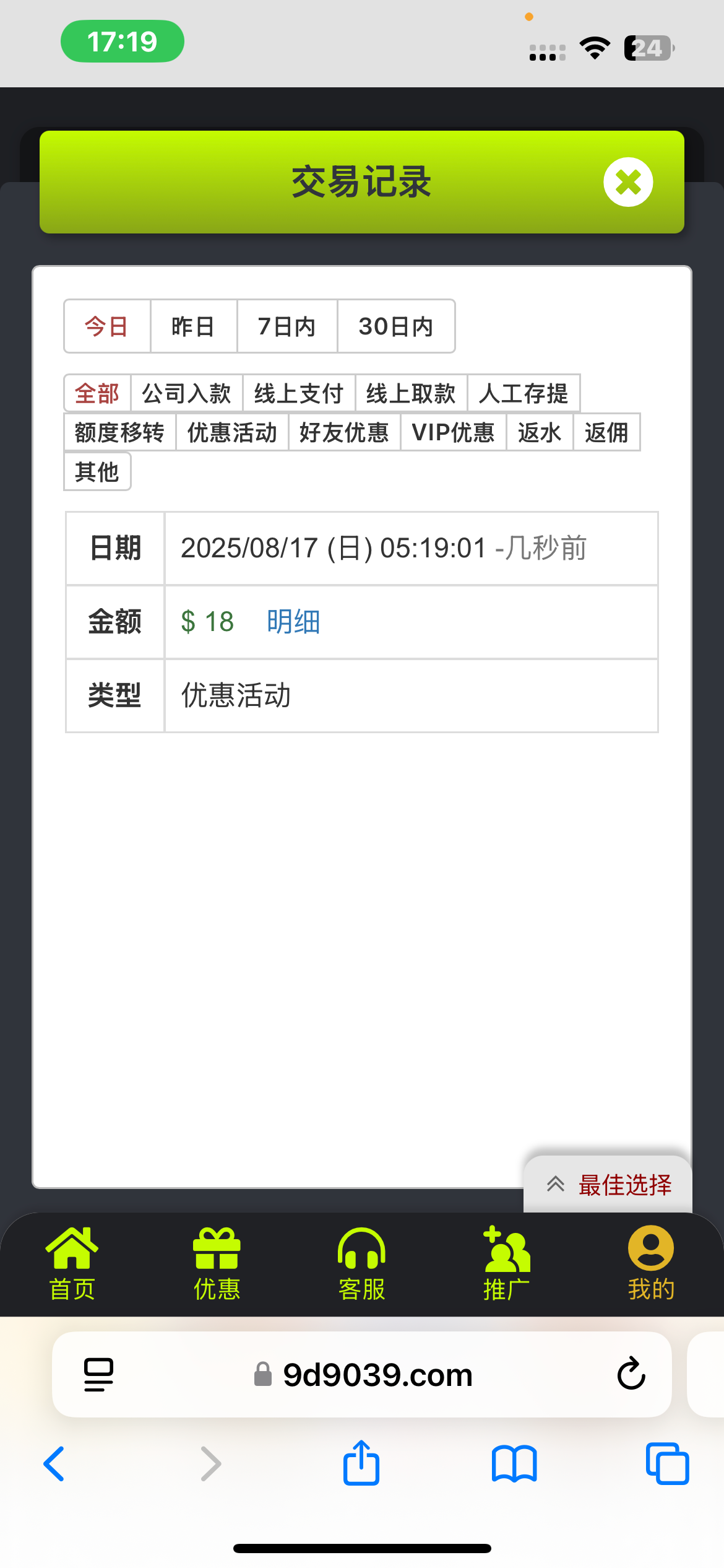 前两天注册的 刚刚打电话来说有彩金 送了18 只能打pg满100一杯水出款 刚刚打到60挂壁了 老哥们可以先注册等电话