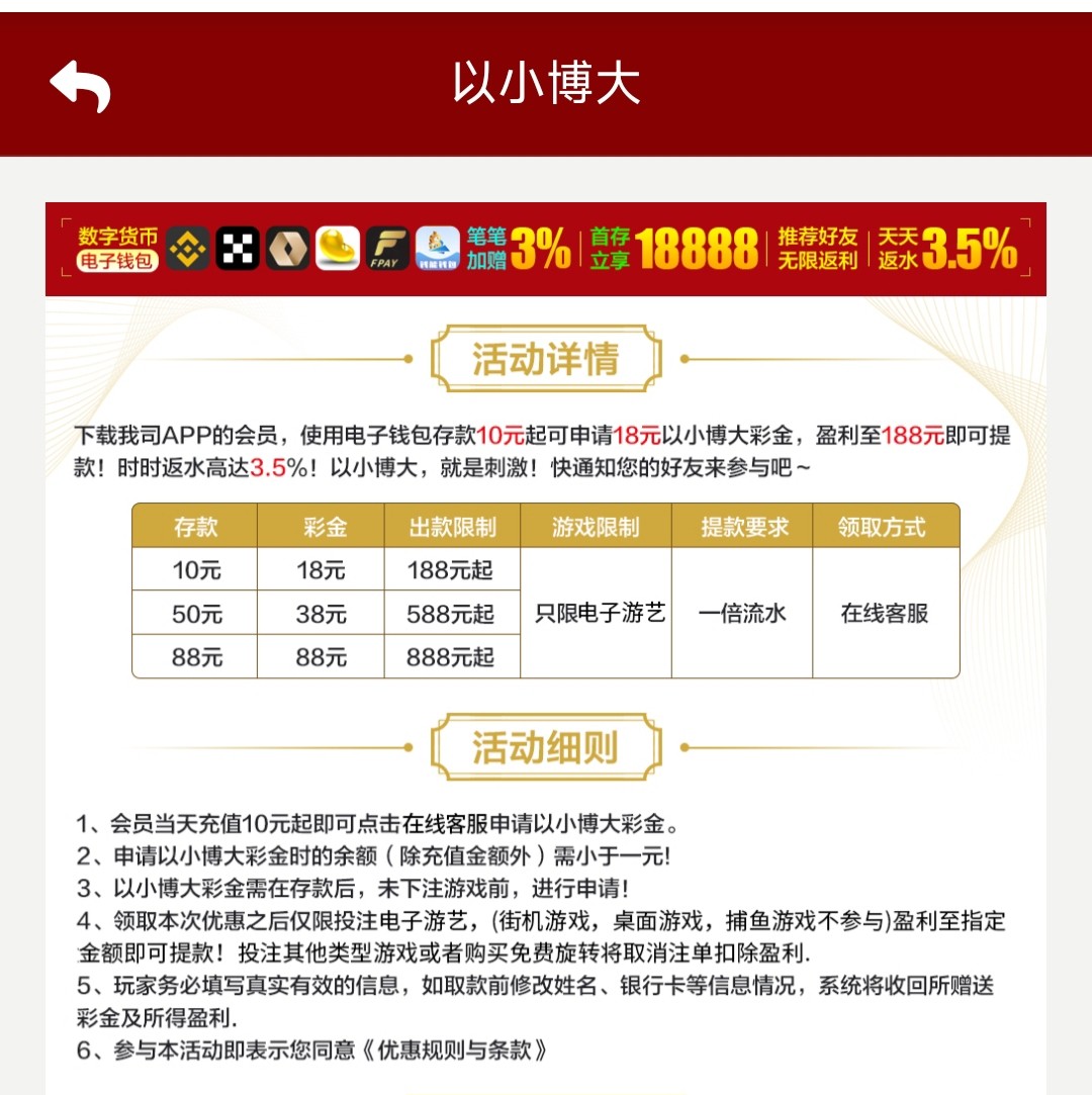 你看这个玩吗,这个台有个包赔100,如果充100亏损,第二天领取100,一杯水提