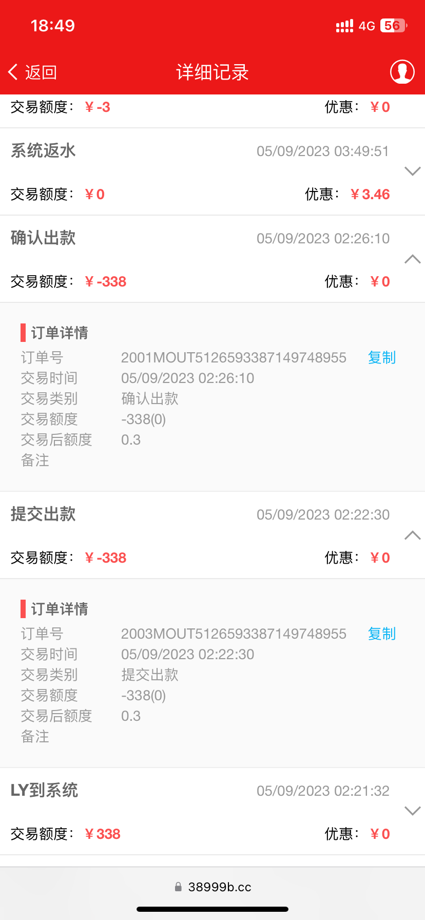 38999纯黑台,基本以小博大充30过500都不给出了,前一段时间,我打了330,流水不够,然后继续打,打到500还是流水不够,600也提了一次,说数据为同步,然后又打了一会儿,到1400提现直接挂逼。