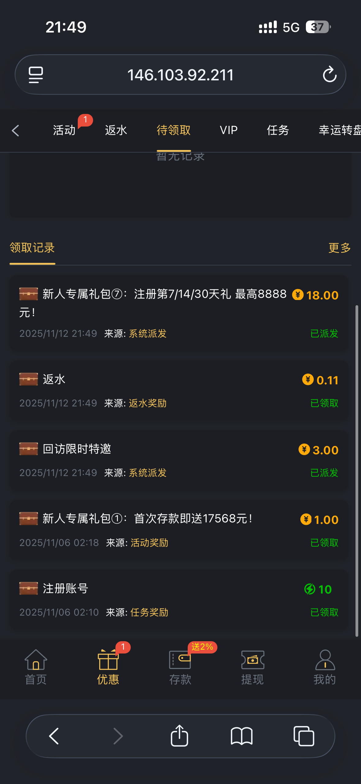 可以登录上去看看有没有,我一共领取了21