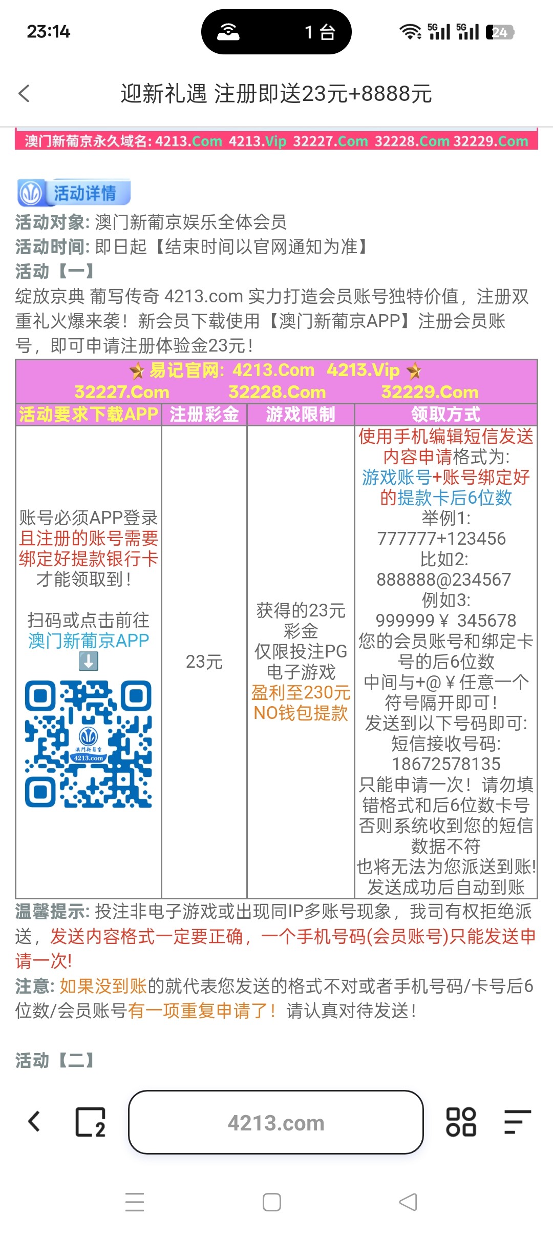 4213短信秒23