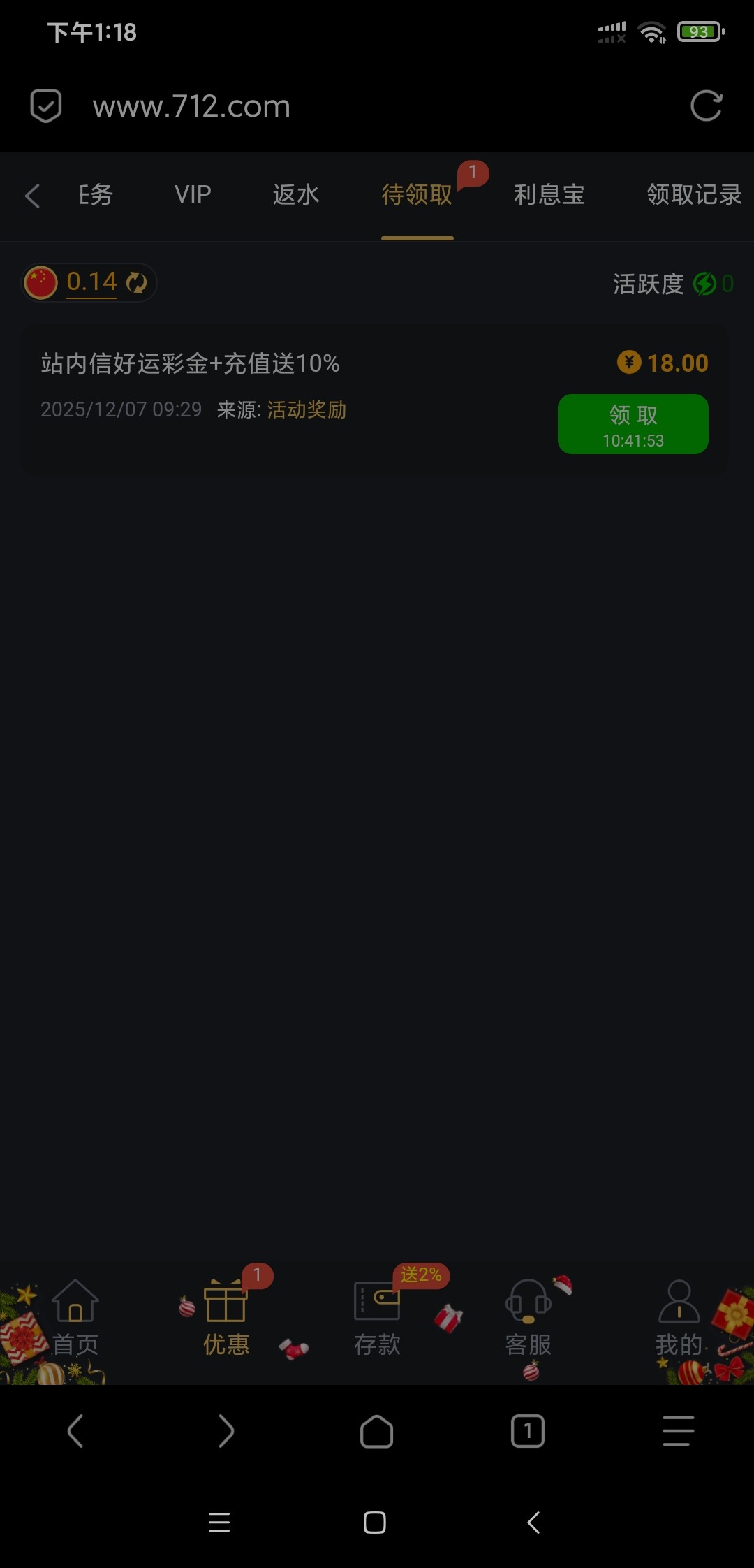 待领取里面直接领,有号上去看看,一天就过期了