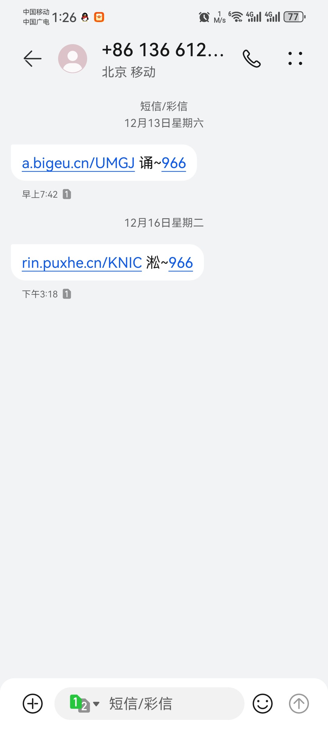 短信链接:a.bigeu.cn/UMGJ