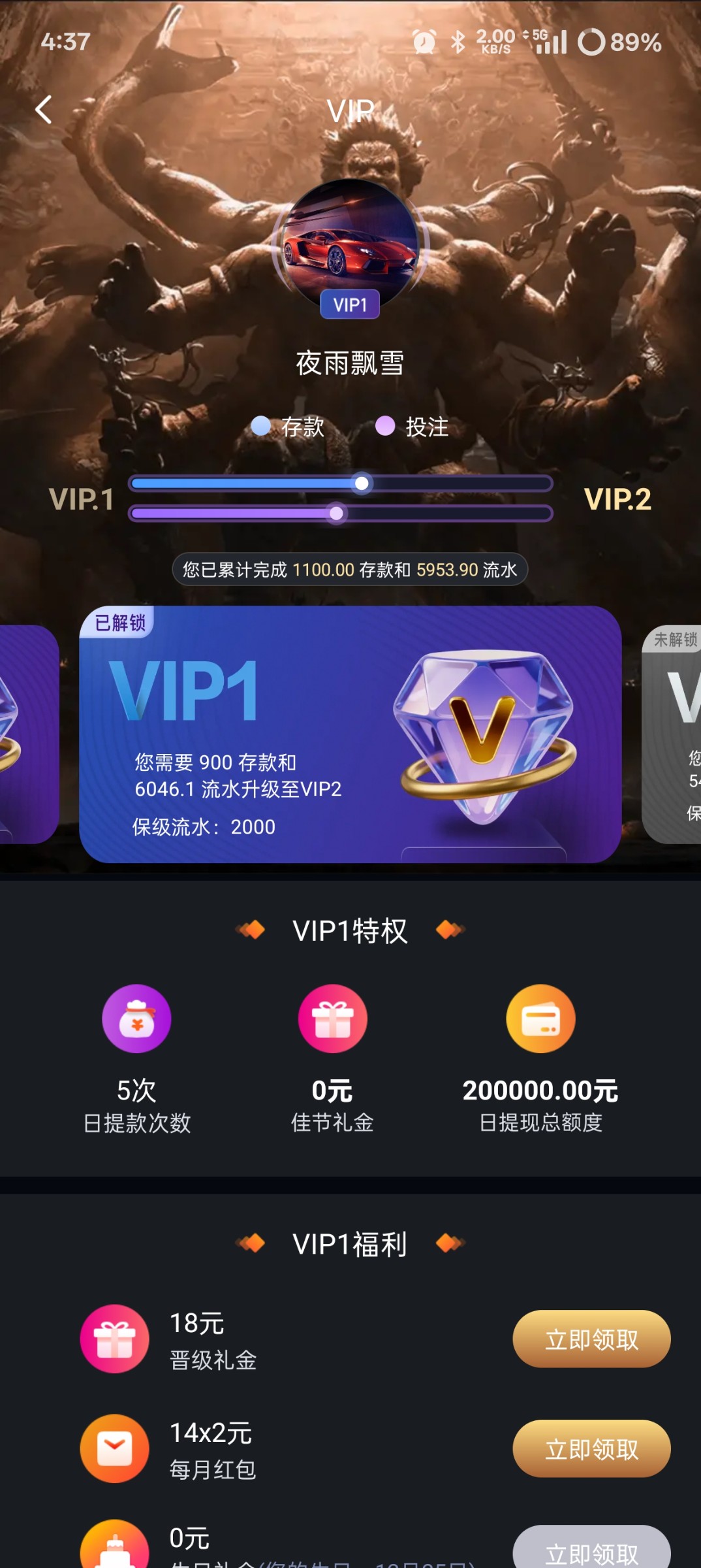 胜天充值了2.5k,打了6w的流水申请688彩金