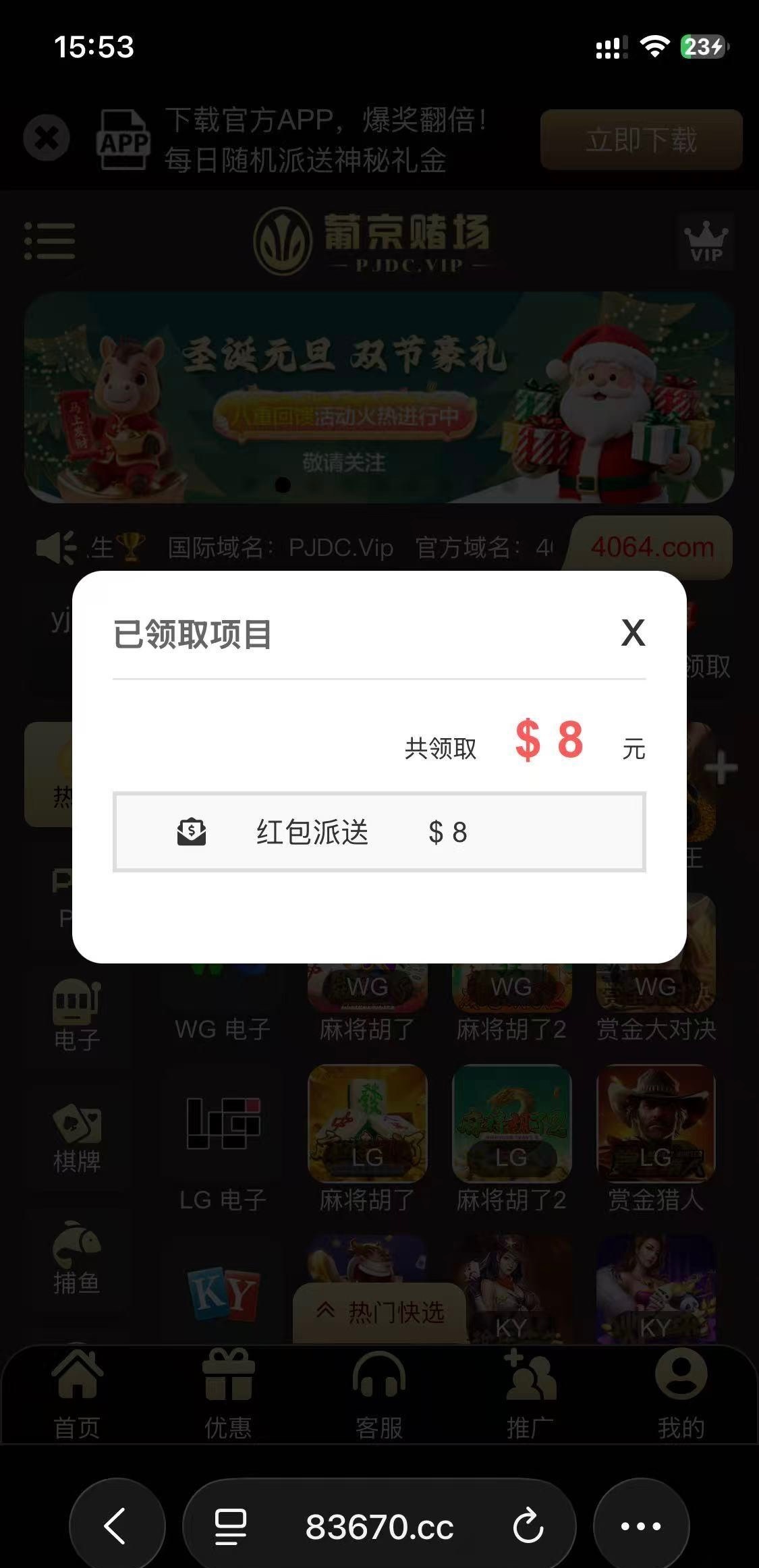 链接4064.com 不知道8块啥回馈,有号的自己登录看,还有红包雨,记得抢看看,不知道大不大,网址图里有