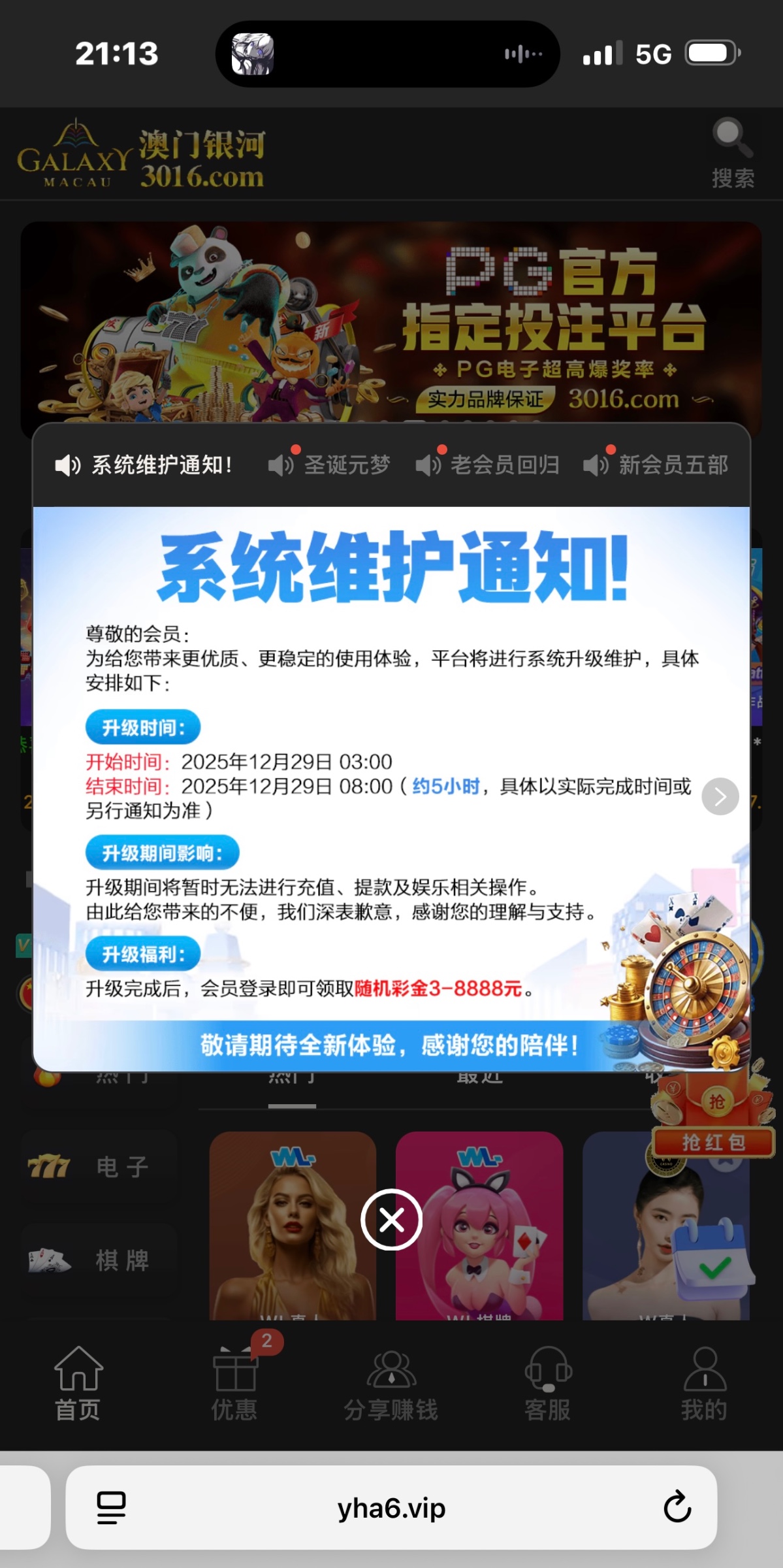 银河维护彩金
