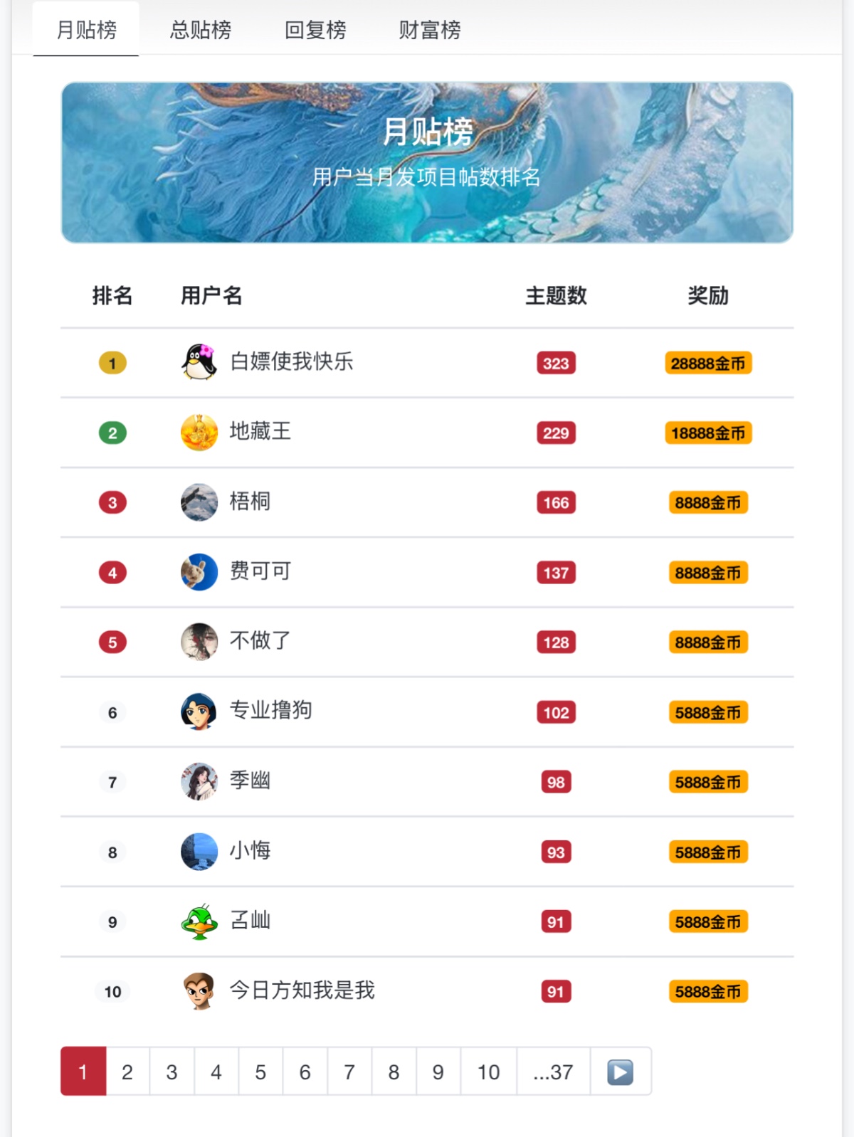 发帖/回复奖励金币和经验: