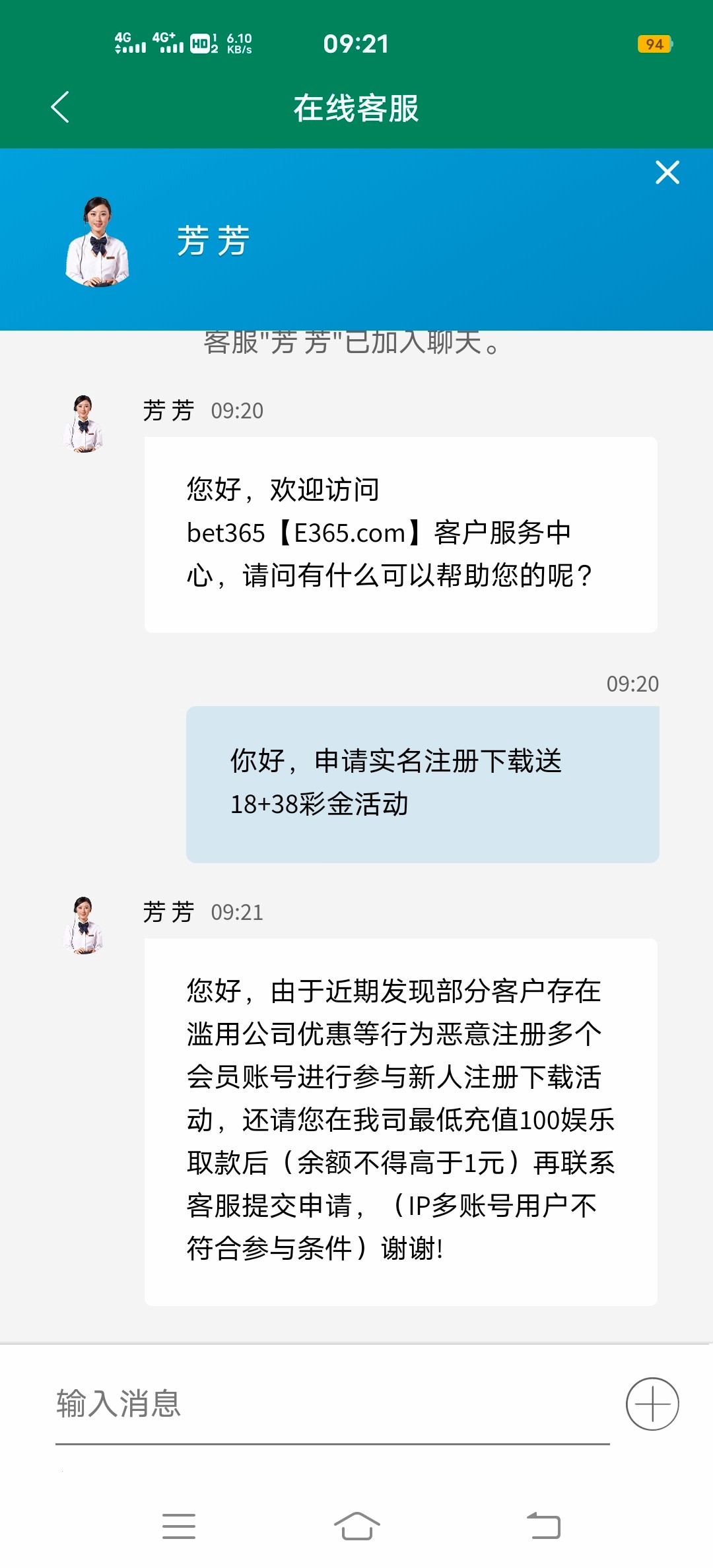 找客服申请了,要充值100,不送