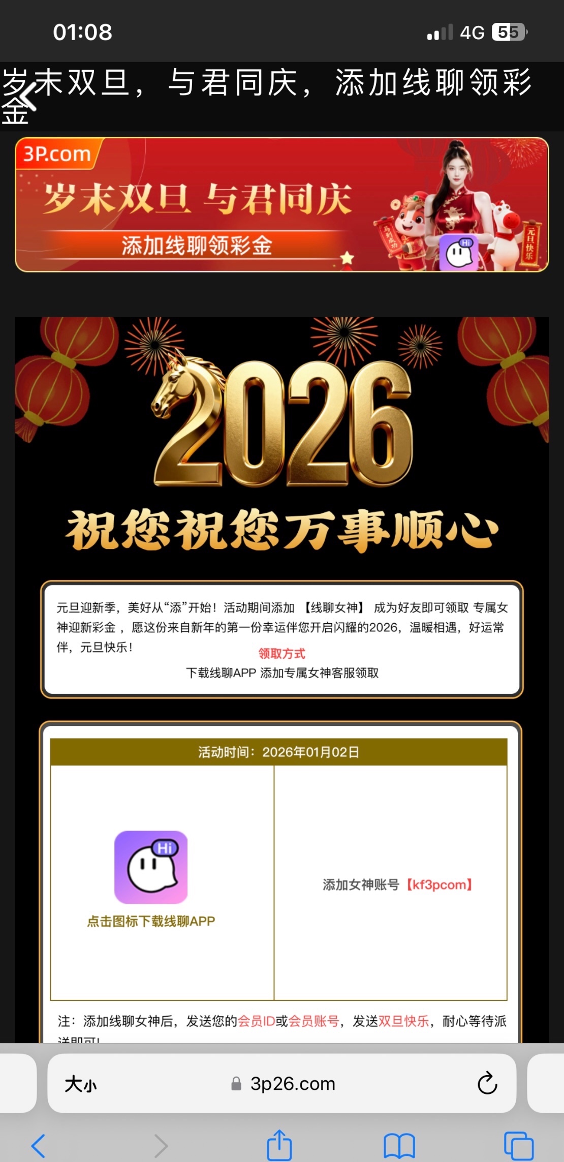 3p棋牌元旦添加线聊女神送元旦彩金,我送了38前几年充值玩过了,3p26.com