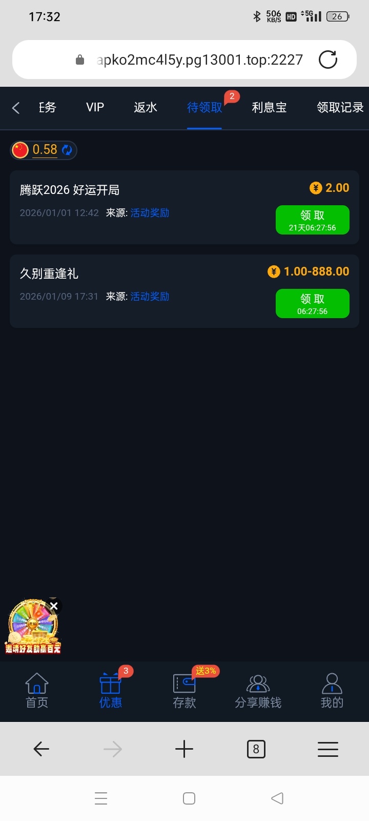 112天没充值可以领取