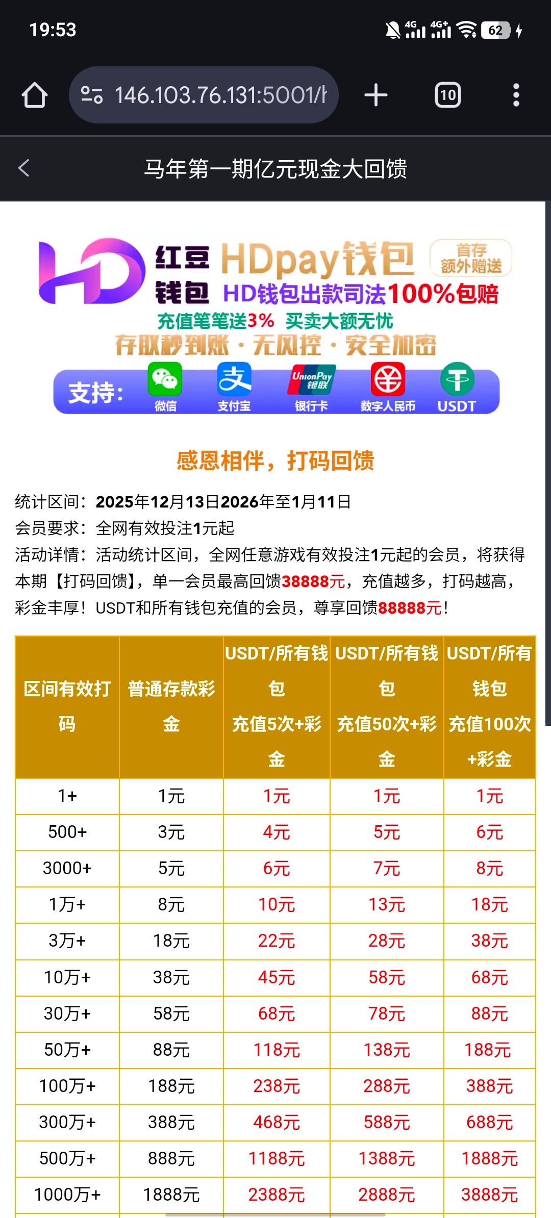 活动详情:活动统计区间,全网任意游戏有效投注1元起的会员