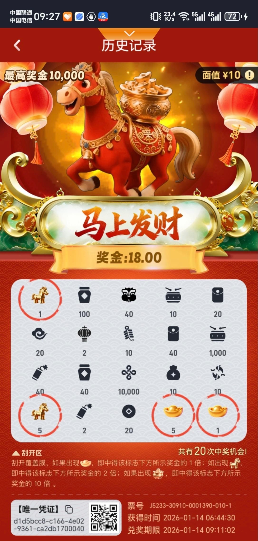 我刮了几个号 最高刮了18。别的地方有人发的刮了一百。