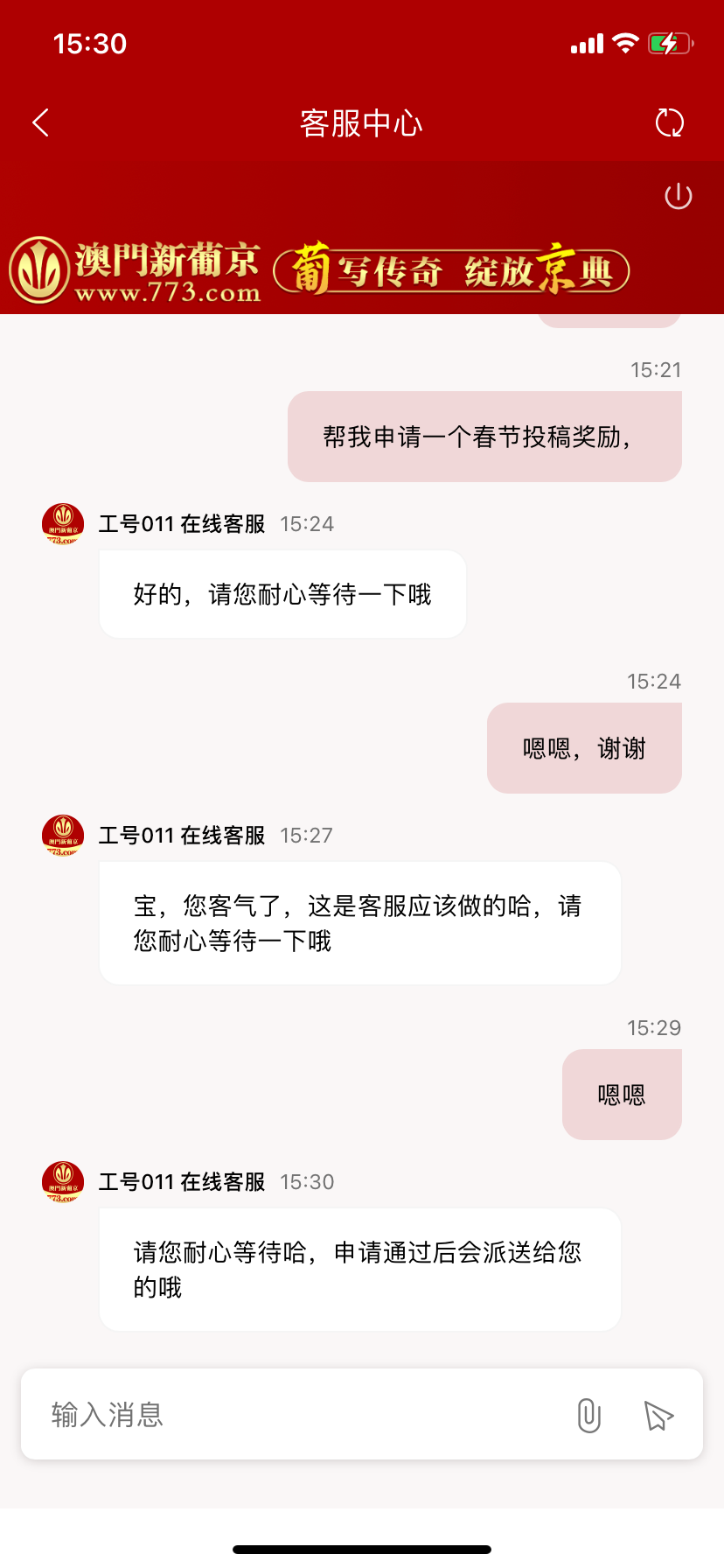 773春节投稿活动, ,找客服申请, 我投的以小博大,年终充值回馈,说话越好听,送的越多 ,赏我个1万8金币 , 773.com