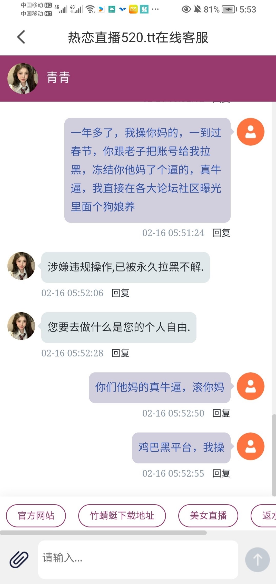 玩了一年多了,一到过春节把老子找个理由给我拉黑,永久冻结了,我操他妈的,这他妈的什么鸡巴垃圾平台