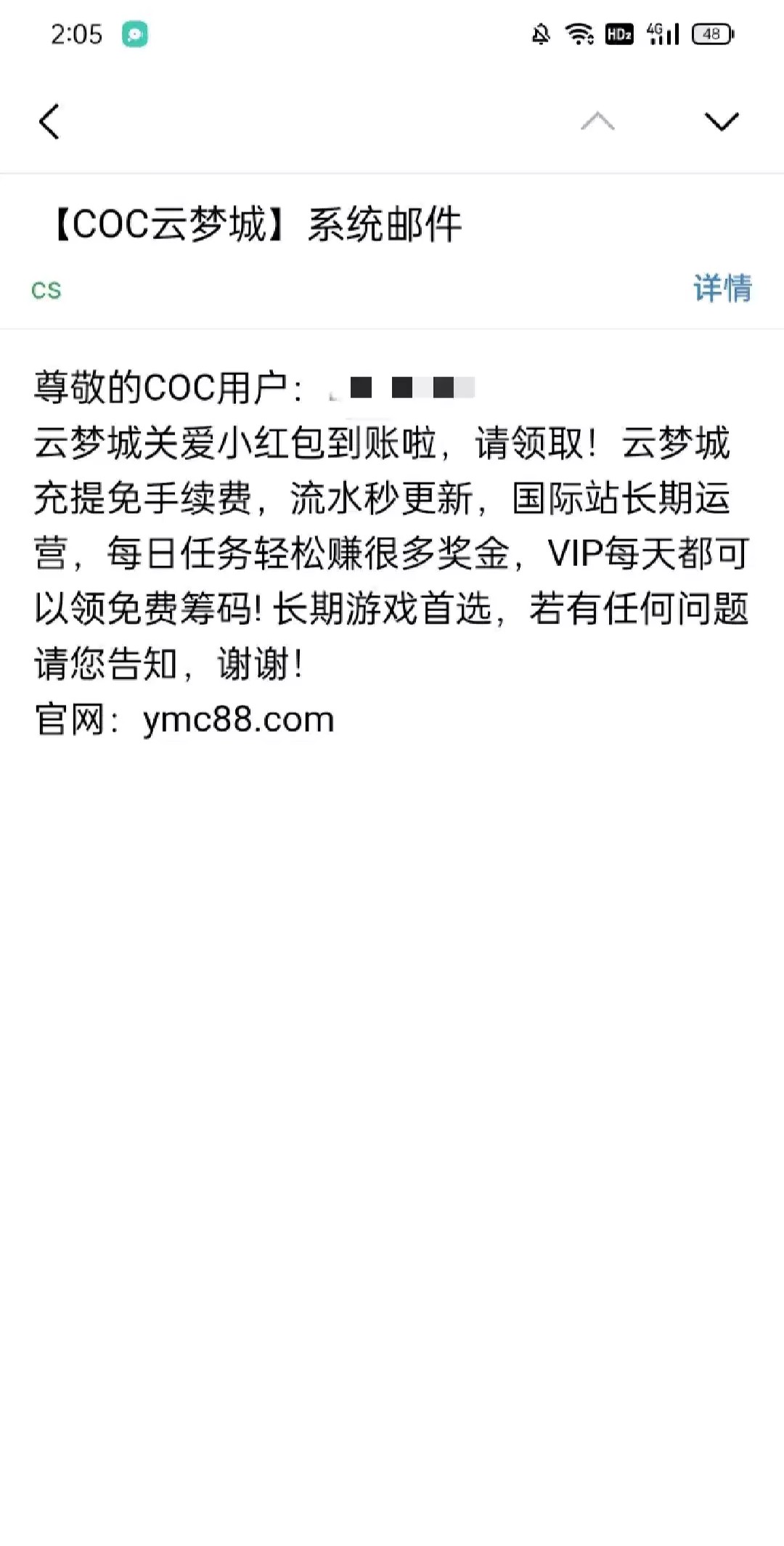 【coc云梦城】邮箱彩金