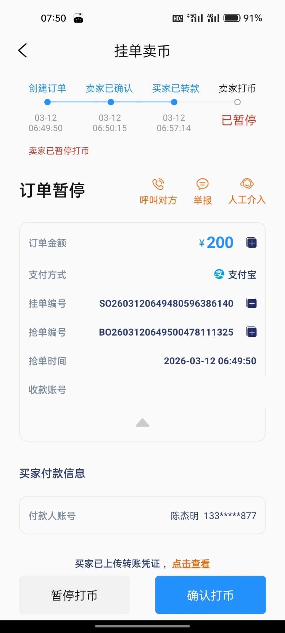 兄弟们盈利多多 不是钱能本人付款给你,必是黑钱,暂停不要放币他,200元你可以没收他,客服也能退给你币