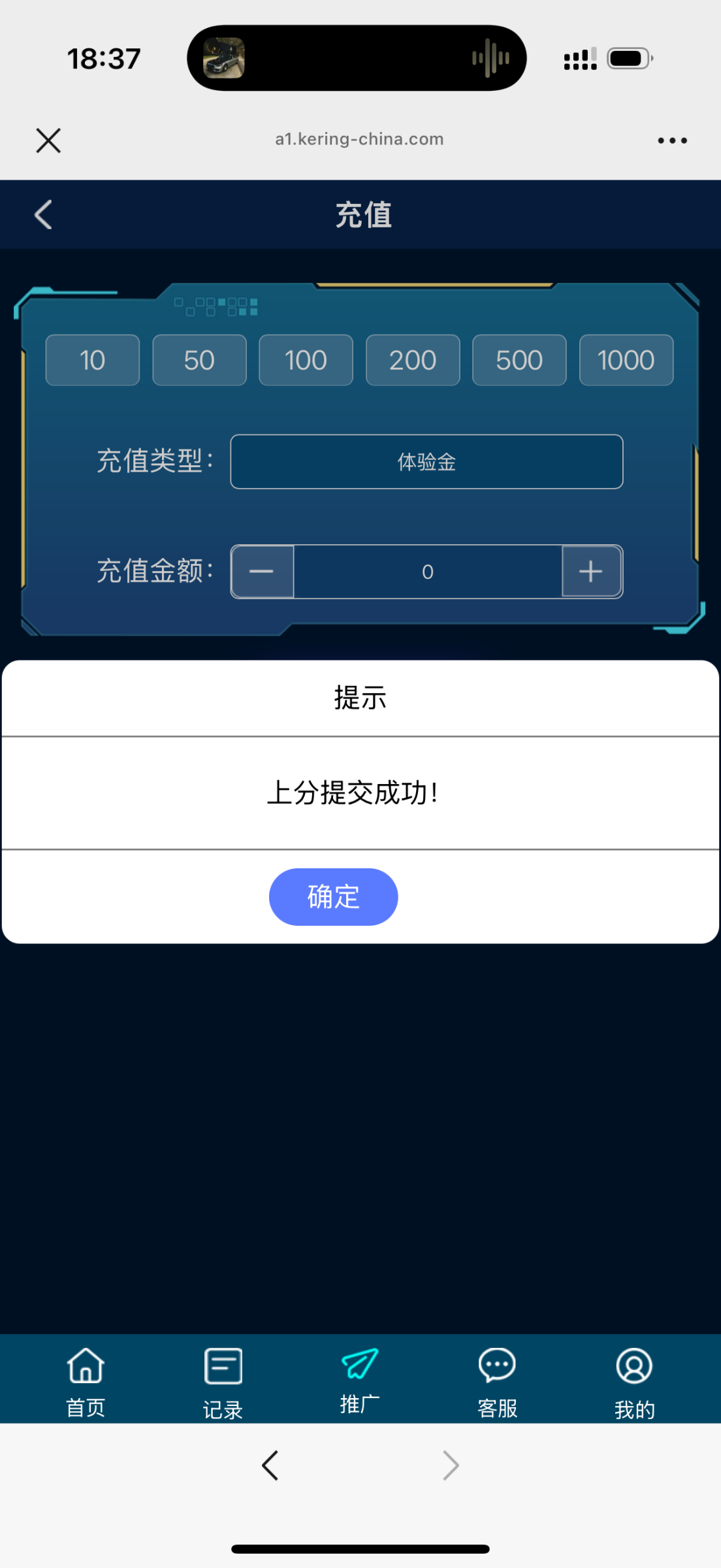 充值里面体验金提交